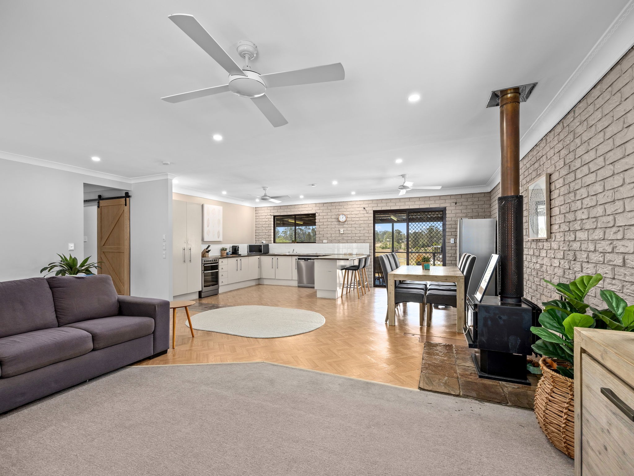 Air-conditioning, ceiling fans & a cosy wood heater
