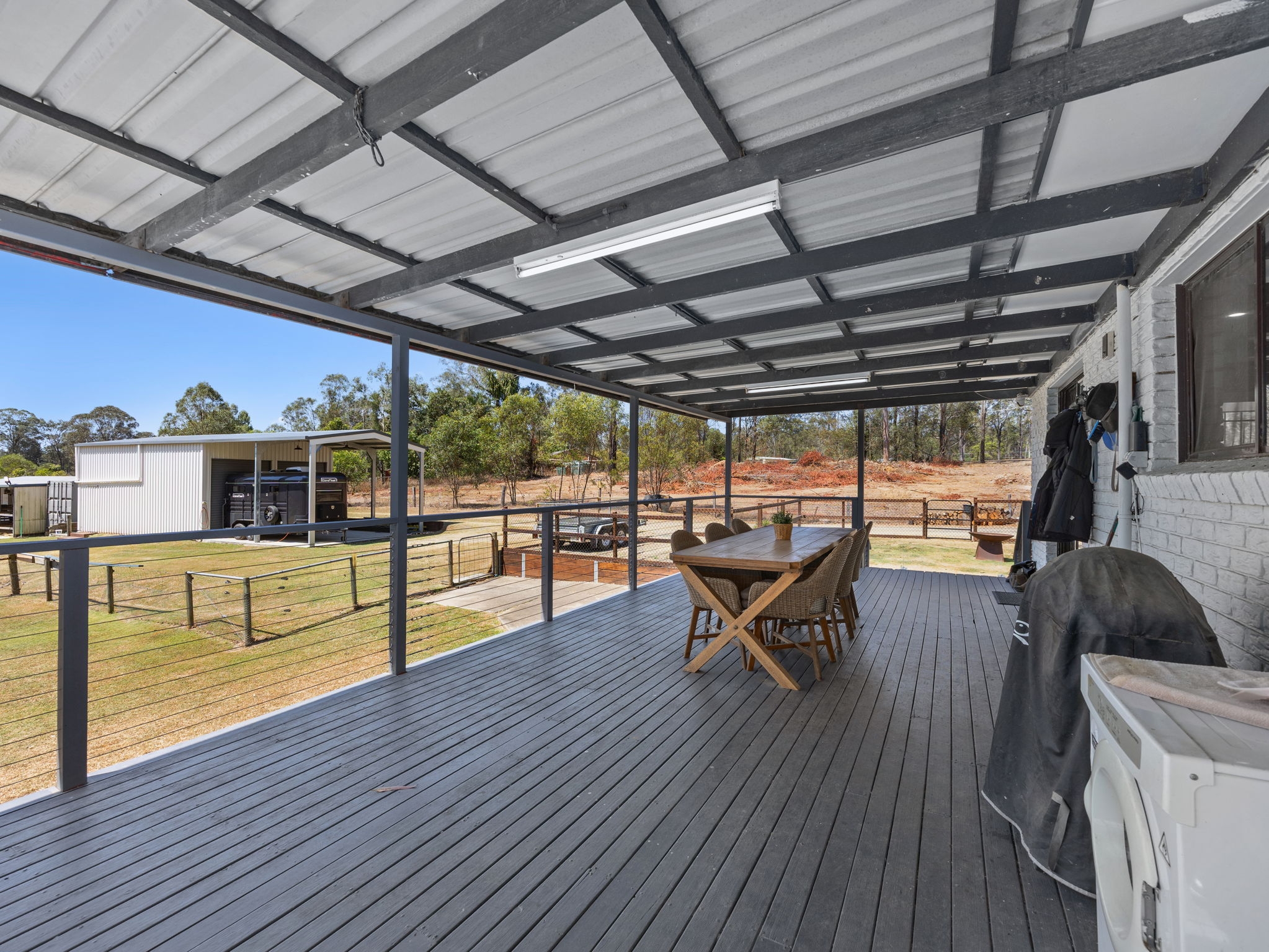 Whether it’s quiet mornings on the deck, working your horses in the arena, or sunsets by the fire pit — this is acreage living done right.