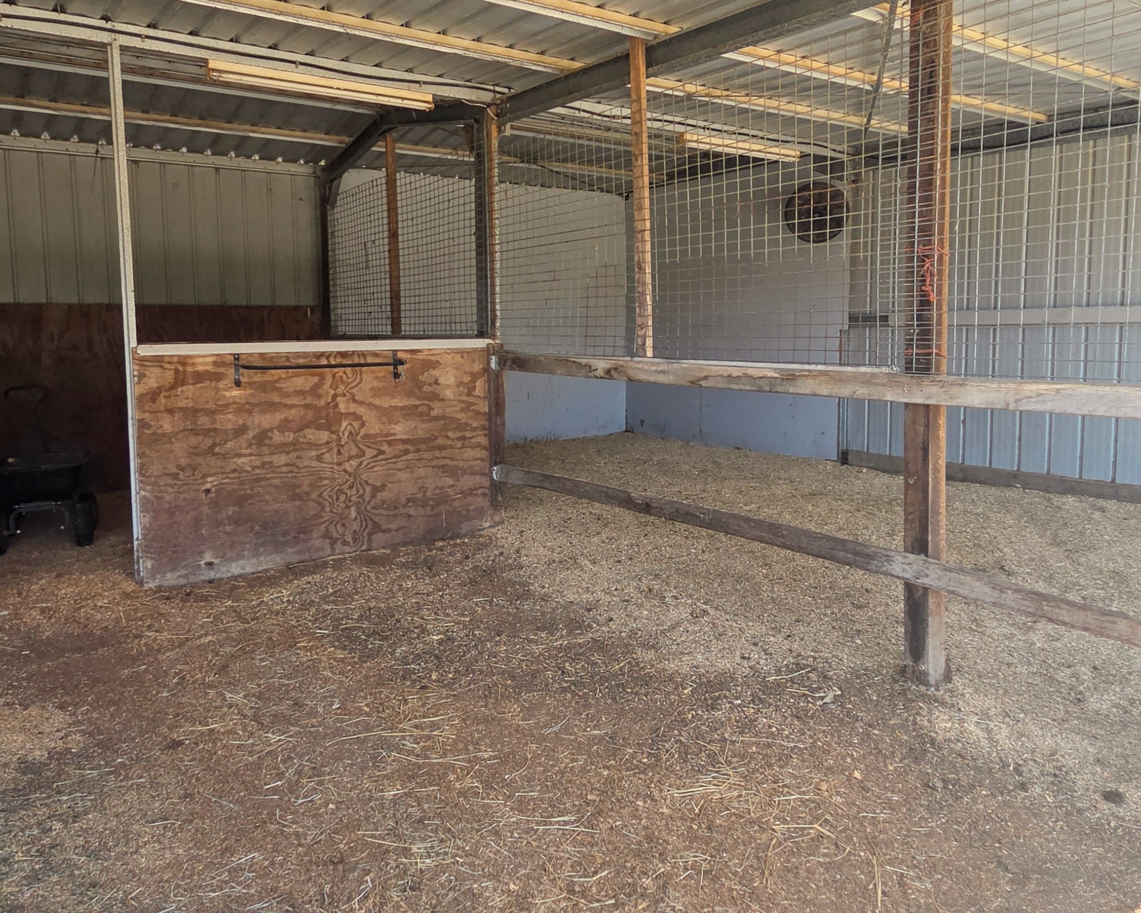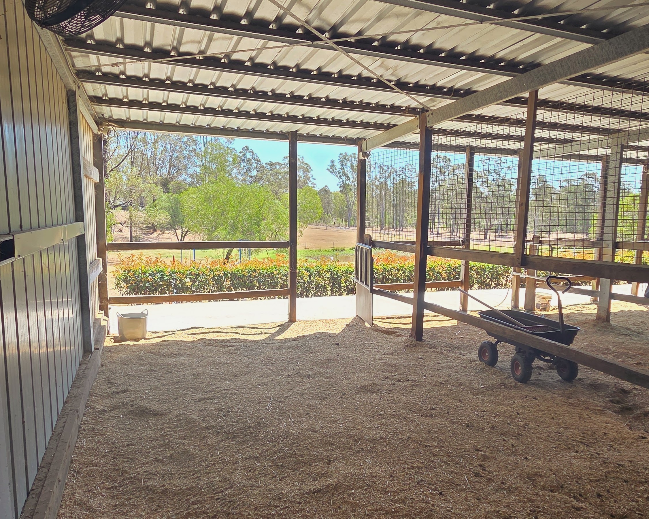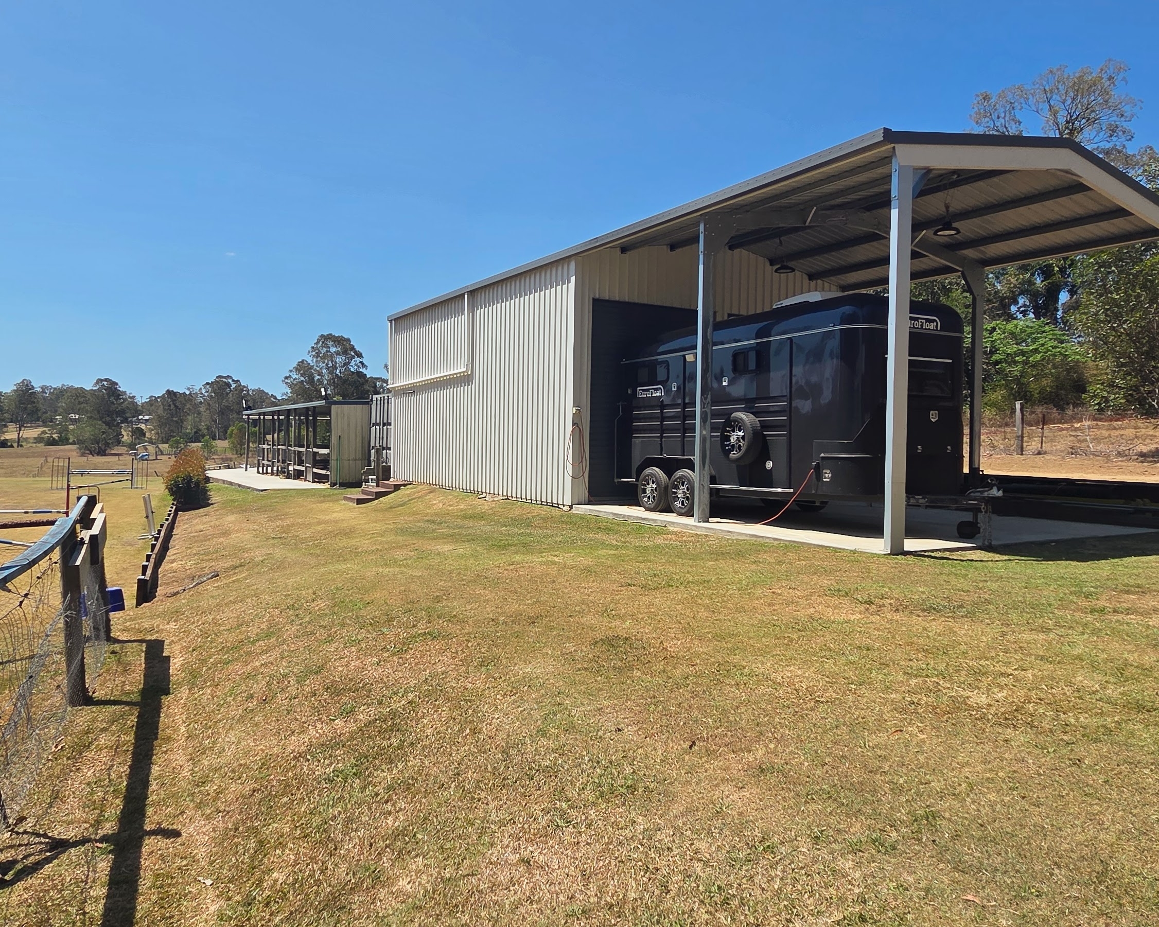 High-clearance shed 7m x 15m with mezzanine + carport bay for floats, trucks, or home business