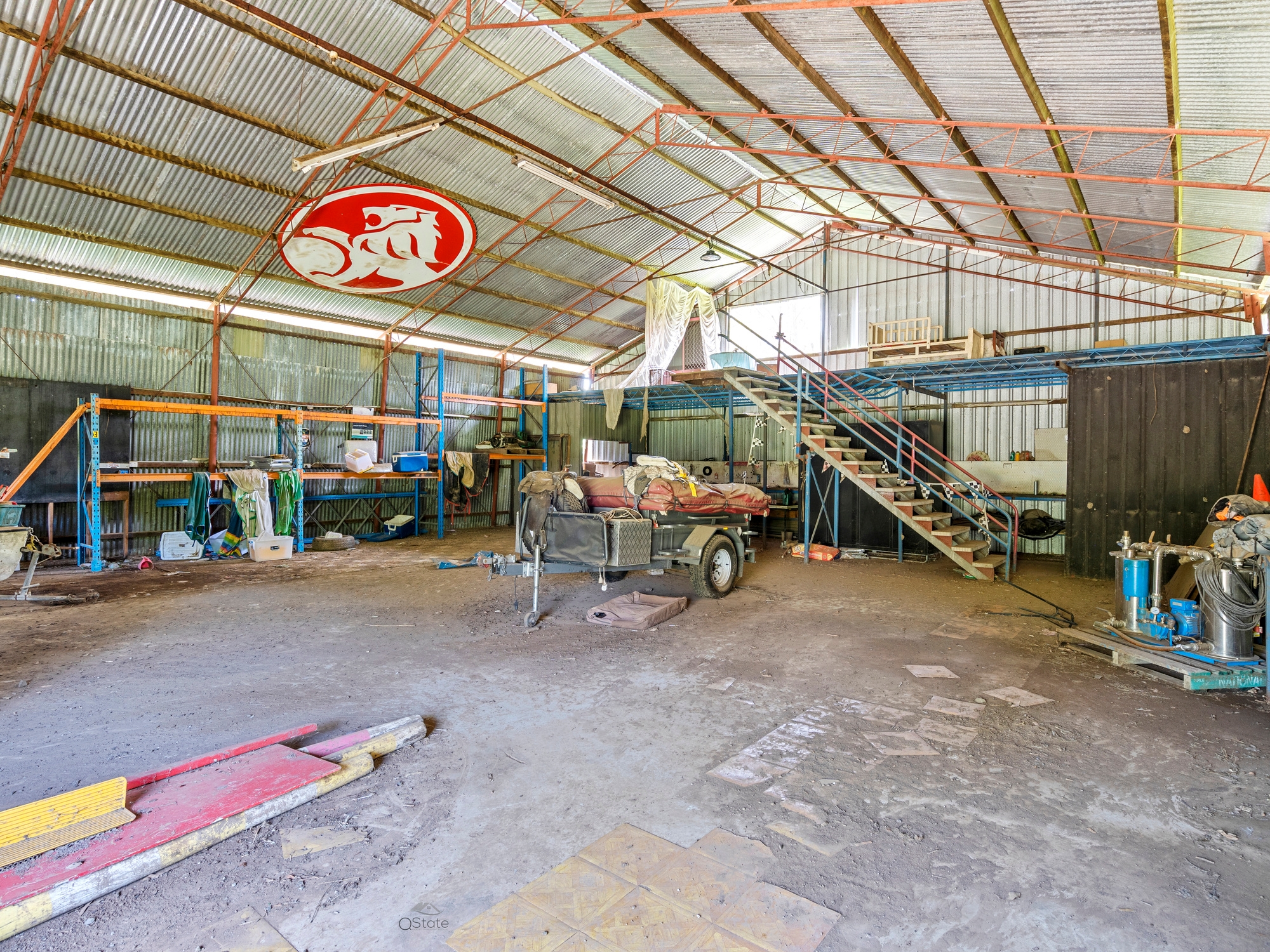Huge 15m x 14m powered machinery shed with concrete floor and mezzanine – ideal for tradies or business owners