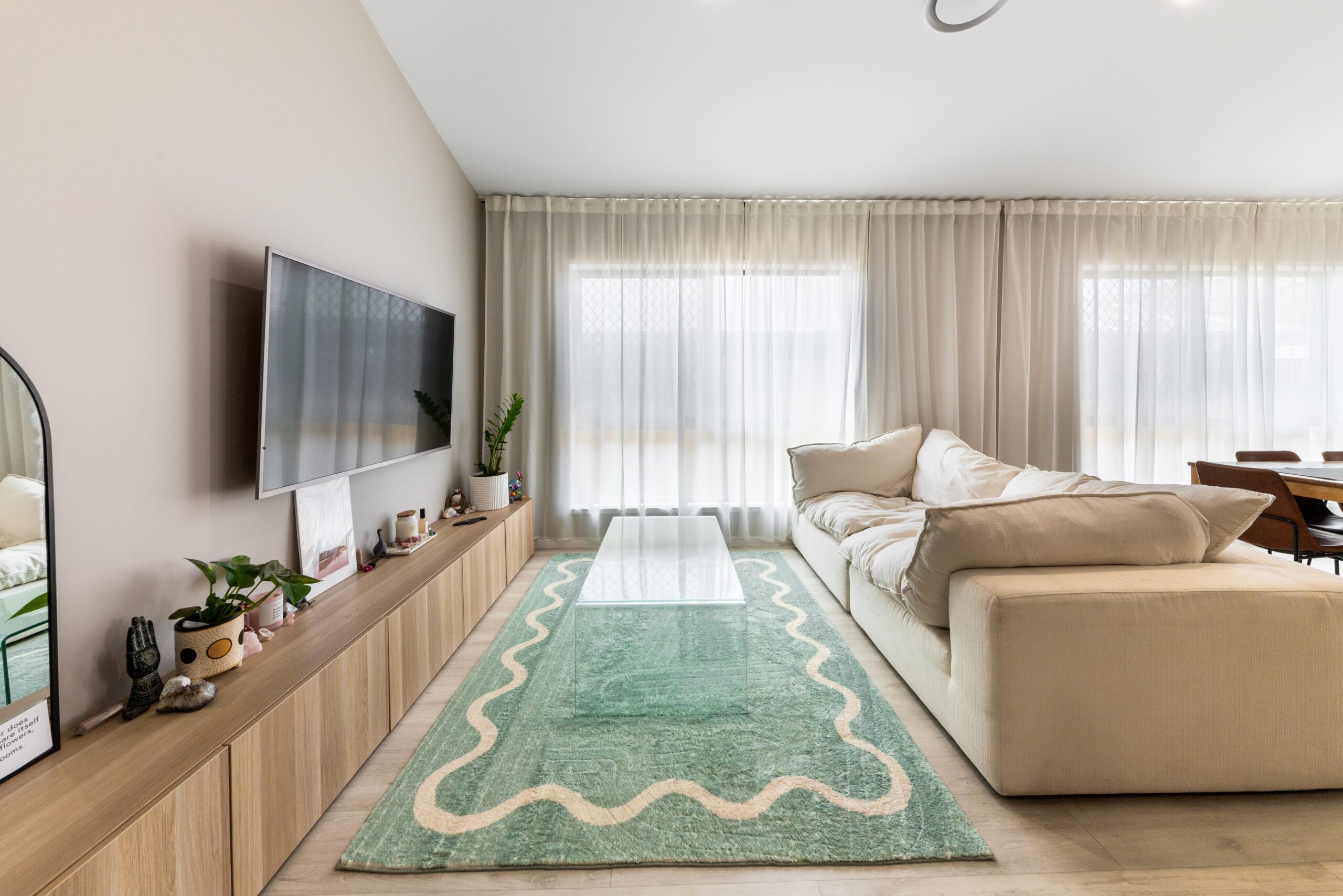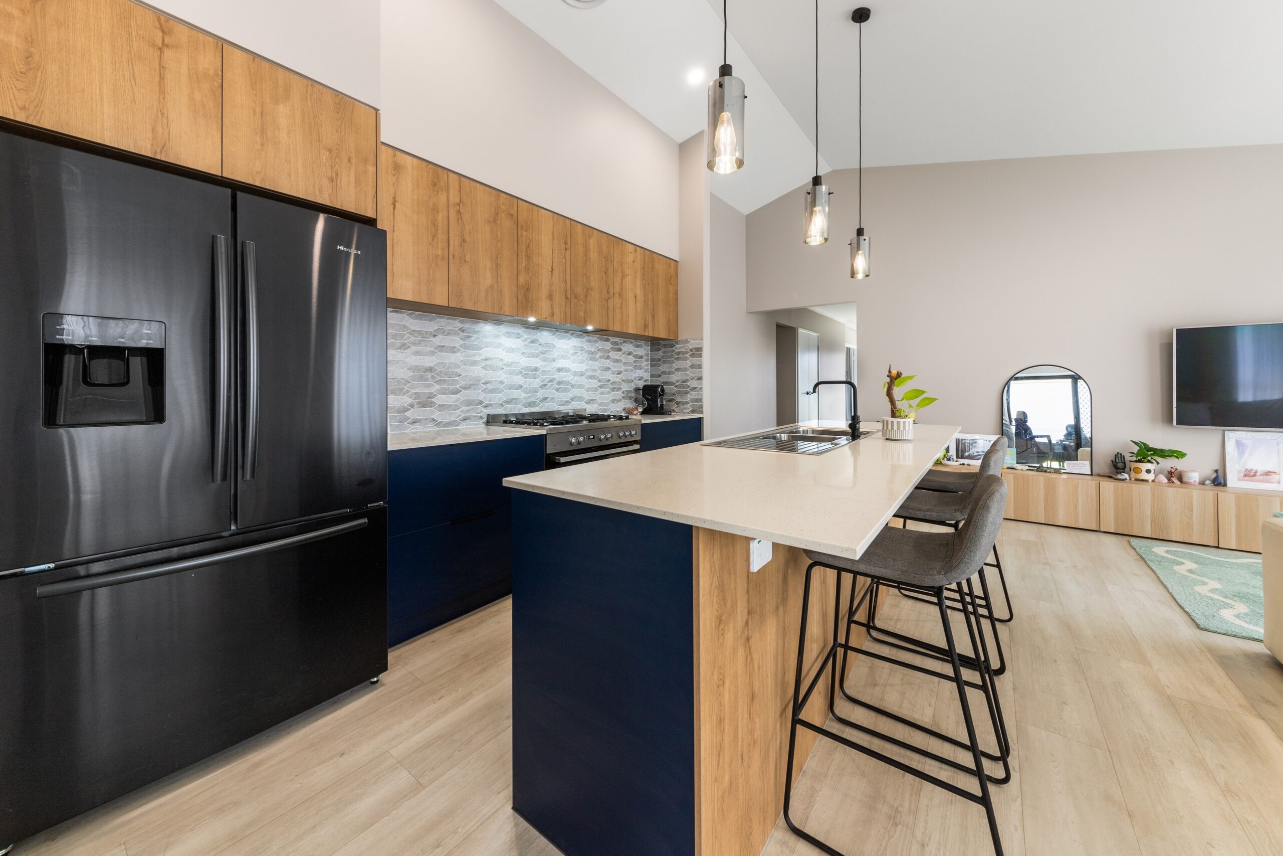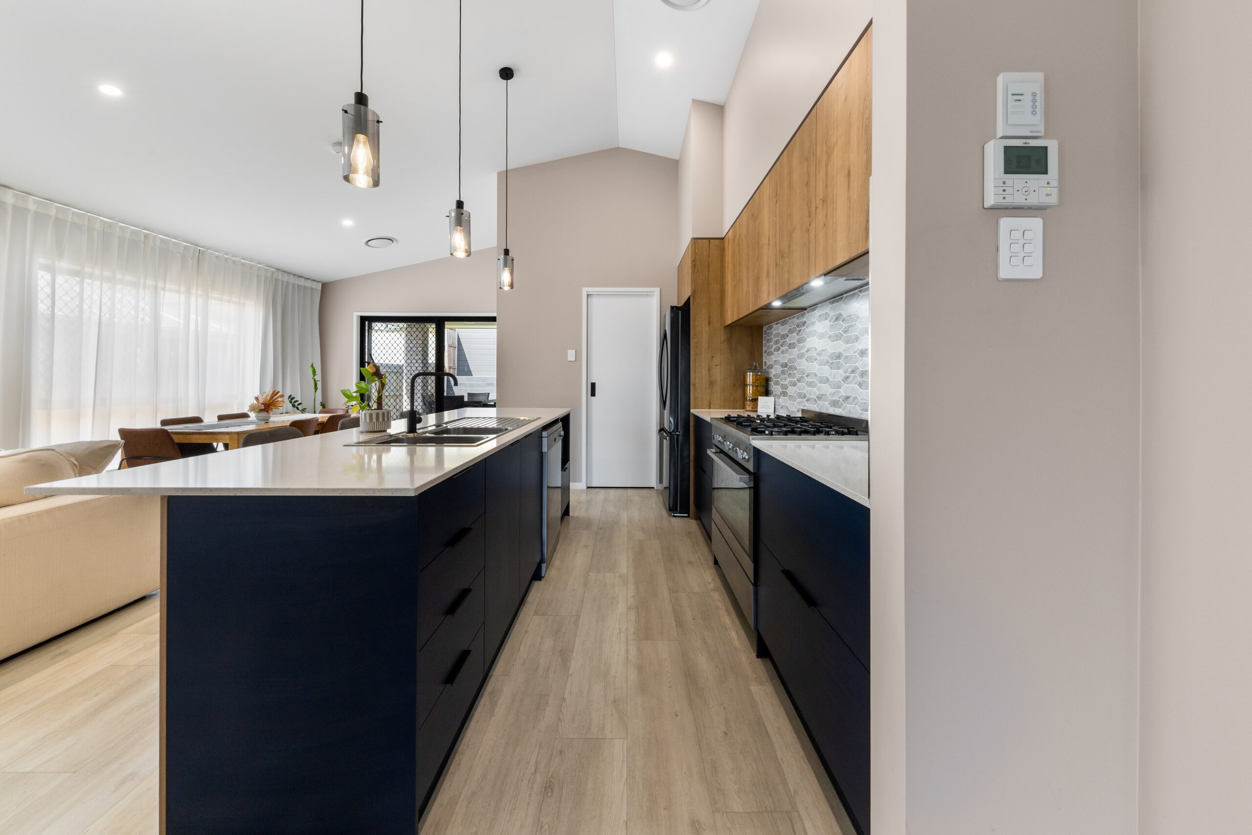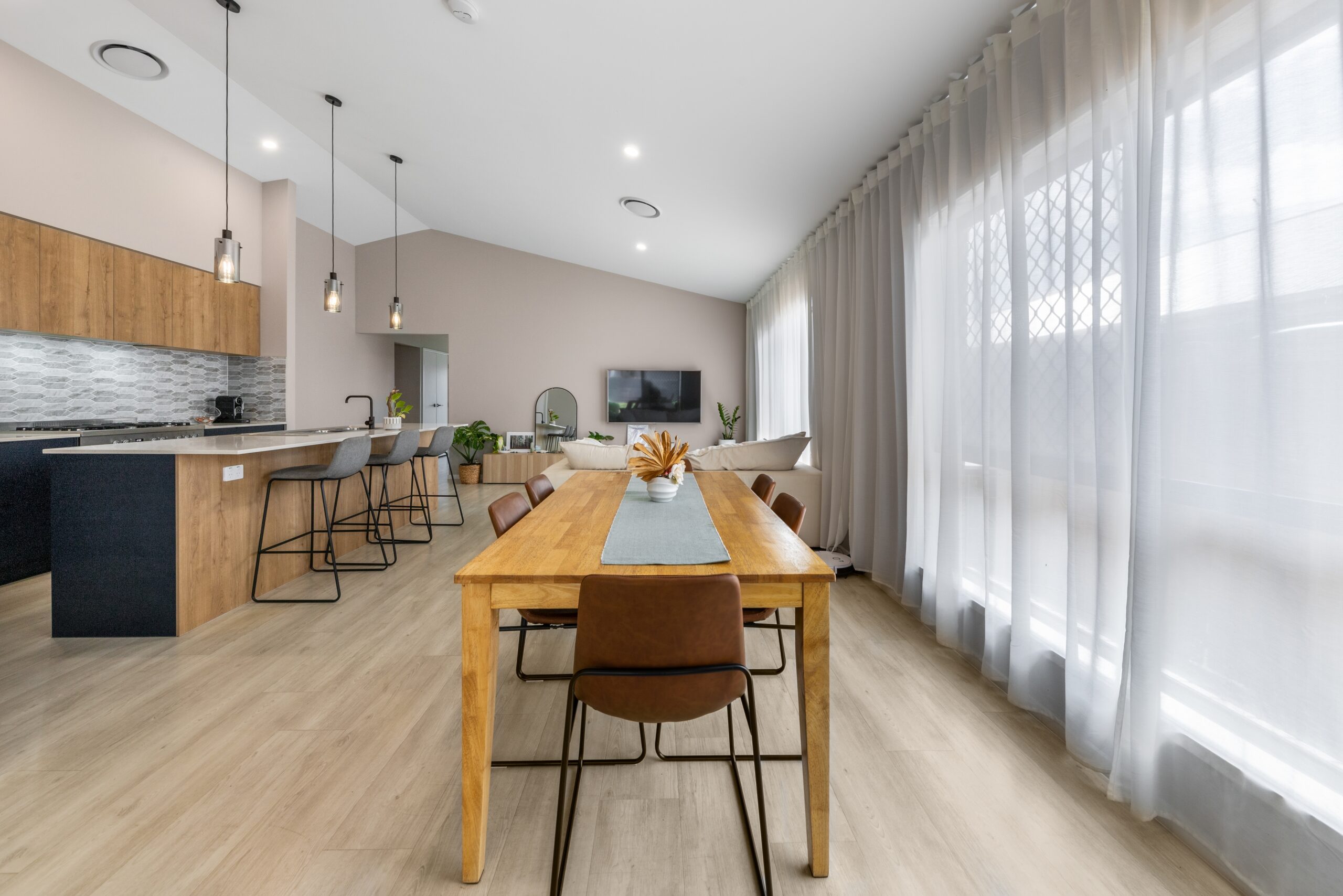 – Stylish raked ceilings in the main living areas, adding a sense of space and light.