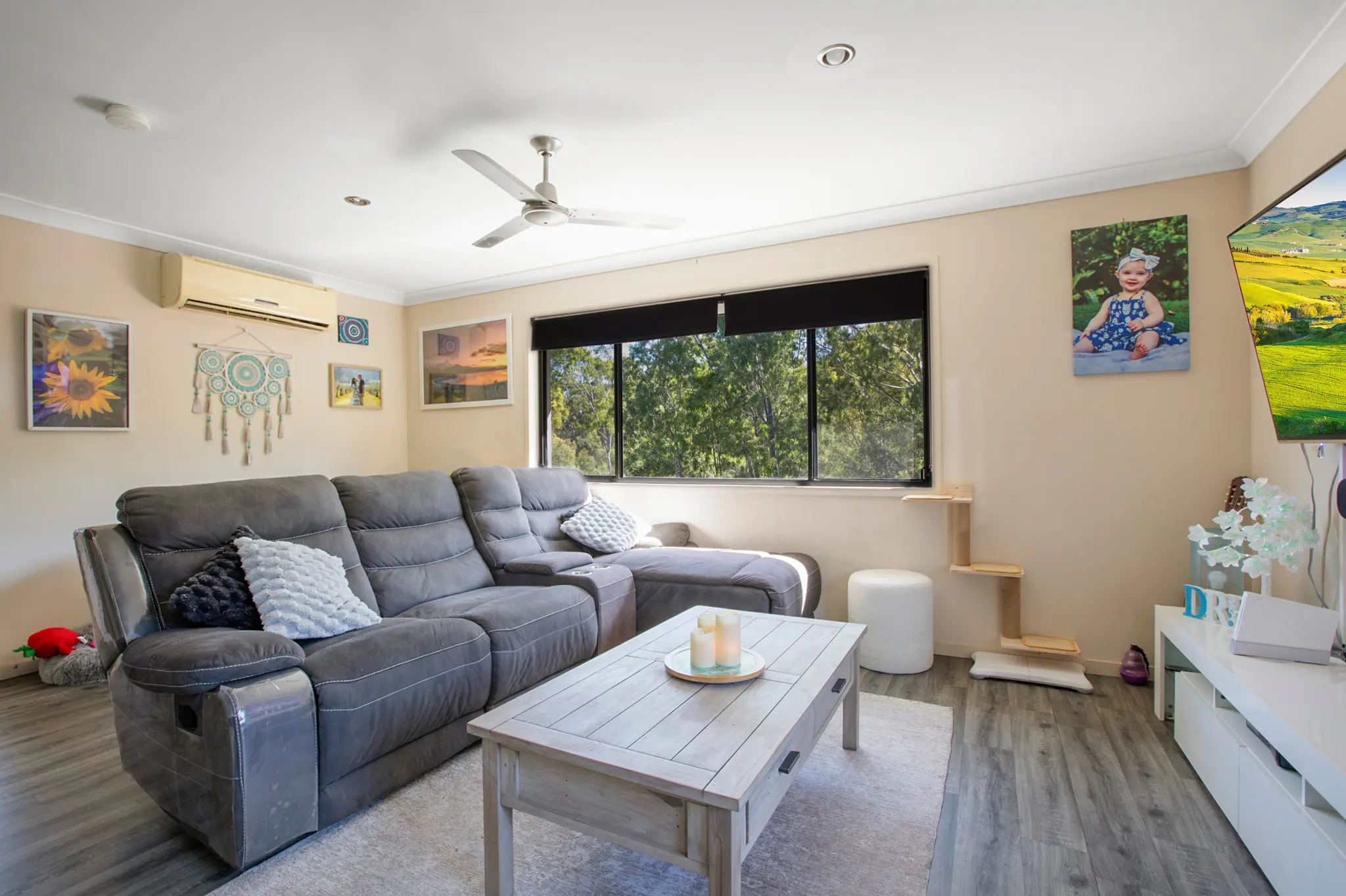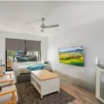 – Reverse cycle air con, blockout blinds & security doors