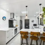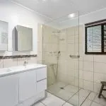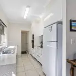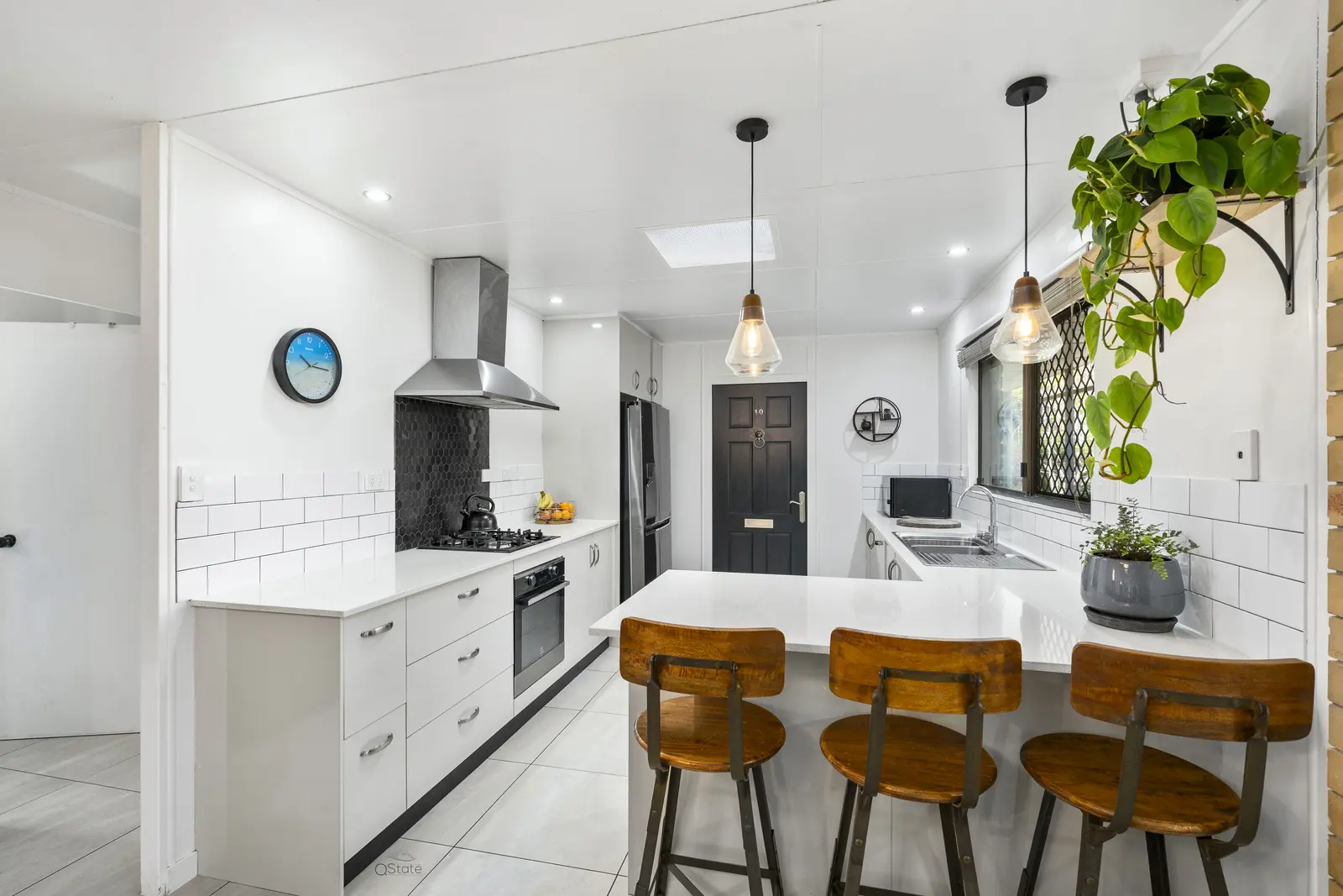 – Kitchen features Caesar Stone benchtops, waterfall ends, soft closes drawers and doors