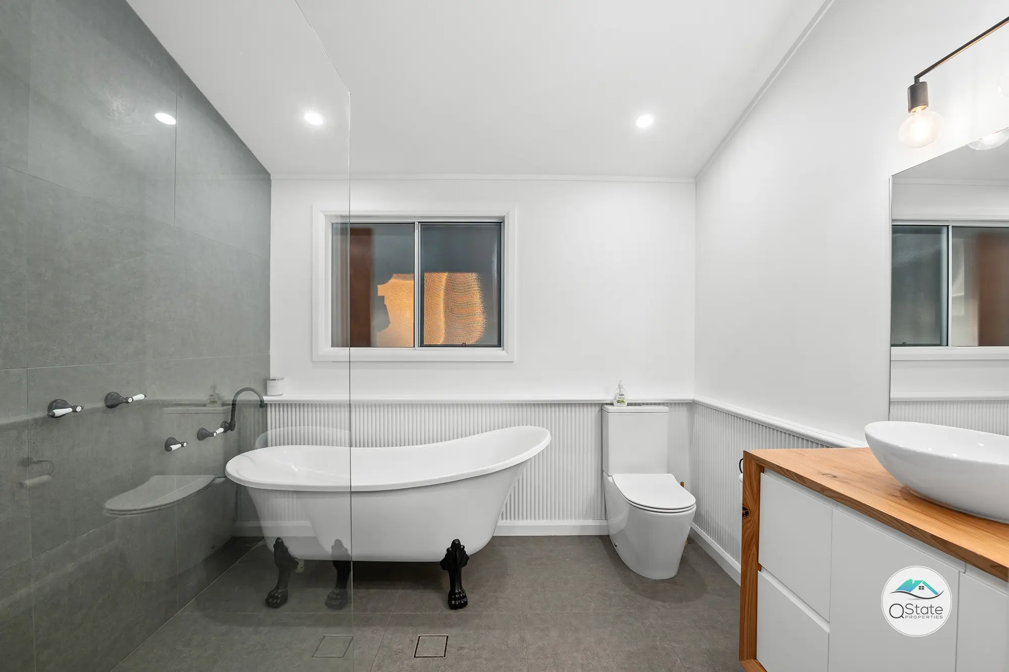 The master suite is a true sanctuary with a huge walk-in robe, ensuite, and clawfoot bath.