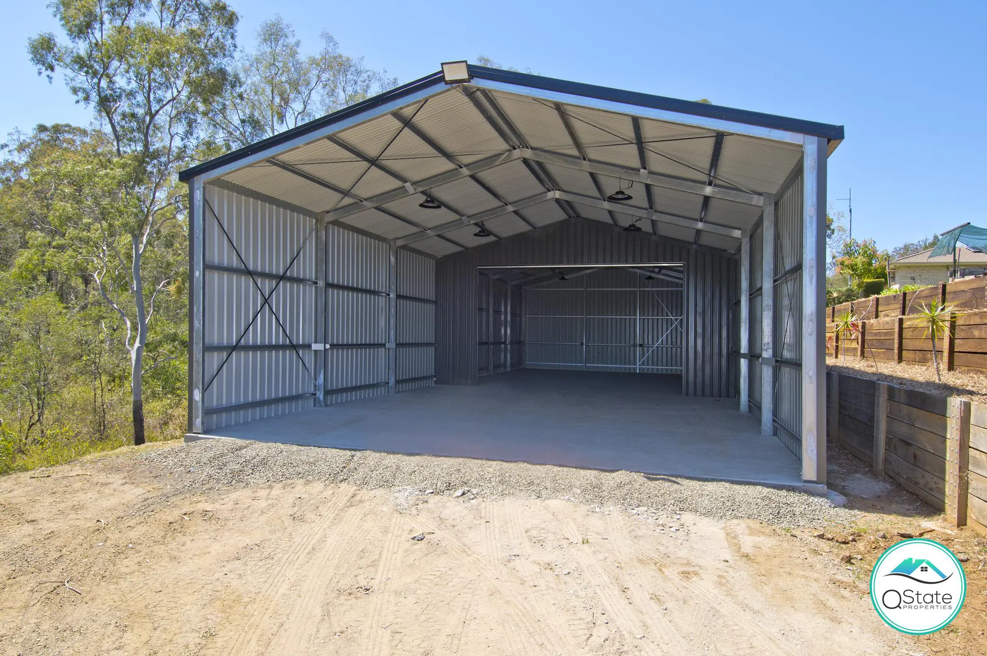 The side access adds convenience and flexibility, making it a walk in the park to park your vehicles, caravan, or boat securely on your property with not just one side access but TWO!