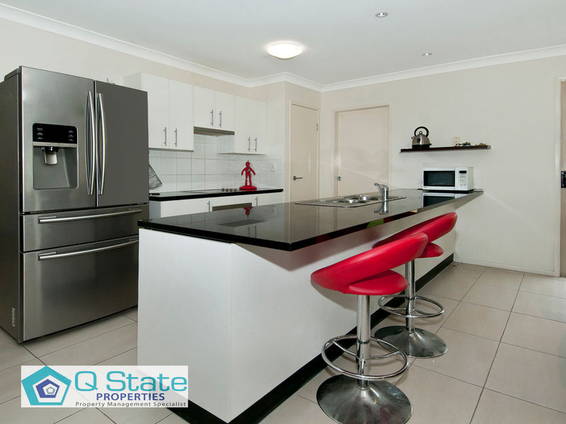 The open plan kitchen has quality appliances including glass cooktop, oven and dishwasher, stone bench tops, built in pantry and provision for an over sized fridge and offers plenty of bench and cupboard space along with a breakfast bar area for those busy morning withs the kids.