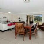 The open plan kitchen has quality appliances including glass cooktop, oven and dishwasher, stone bench tops, built in pantry and provision for an over sized fridge and offers plenty of bench and cupboard space along with a breakfast bar area for those busy morning with the kids.