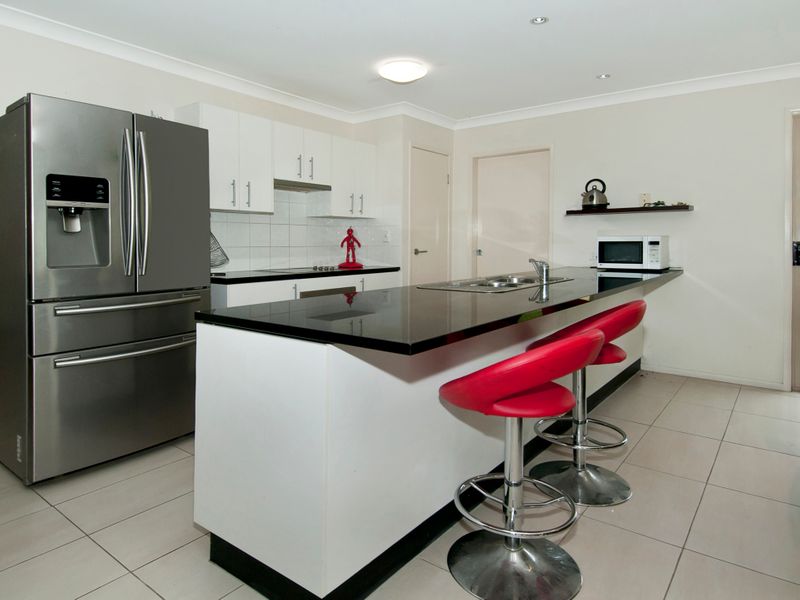 The open plan kitchen has quality appliances including glass cooktop, oven and dishwasher, stone bench tops, built in pantry and provision for an over sized fridge and offers plenty of bench and cupboard space along with a breakfast bar area for those busy morning with the kids.