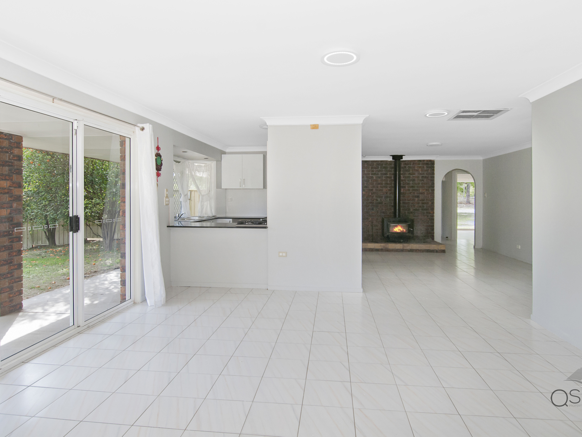 The main lounge room on the other side of the entrance hall has been updated with new flooring, painting, curtains and leads through to the open plan Kitchen, Dining, Family area which is complimented by a slow combustion wood fire to keep you warm and cosy through winter whilst individual air circulation vents for summer air flow and are supported by an air conditioner in the Family Room.