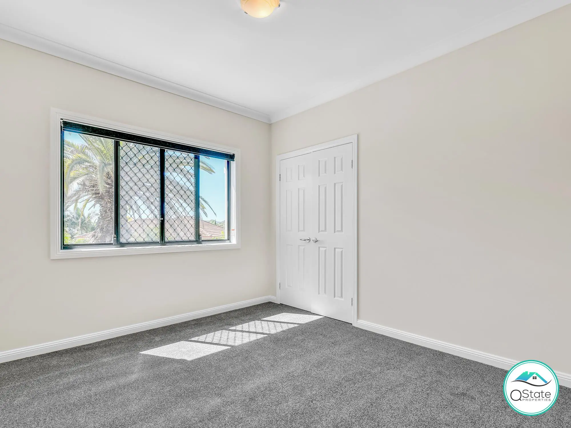 The luxury extends beyond the interior with features like an intercom-linked front gate with monitors on both floors, enhanced security at the garage, and comprehensive block-out roller blinds throughout. Newly painted interiors, plush new carpeting, and an elegant timber staircase further underscore the exclusive feel of the home.