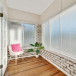 Master bedroom with bay window and split system air conditioning unit