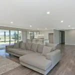The open plan living featuring air conditioning, quality flooring and curtains taking full advantage of the outlook capturing the summer breezes via the large doors that open onto the HUGE rear patio – perfect for all year round entertaining.