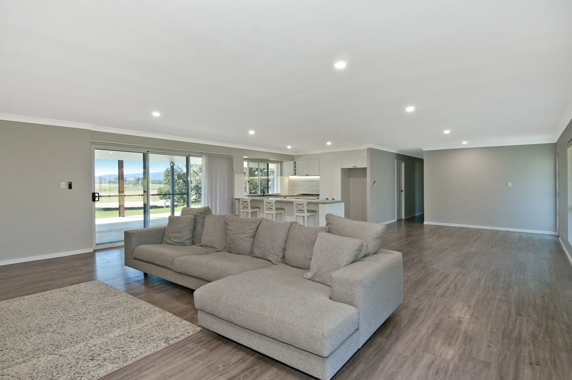 The open plan living featuring air conditioning, quality flooring and curtains taking full advantage of the outlook capturing the summer breezes via the large doors that open onto the HUGE rear patio – perfect for all year round entertaining.