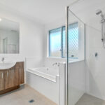 Upon entering, you’ll discover a modern kitchen equipped with stylish black premium appliances and built in pantry. The open-plan design seamlessly connects the kitchen to the spacious, air-conditioned living and dining areas, which feature large glass doors leading to the private backyard and a convenience study nook so you can easily be cooking in the kitchen and keeping an eye on the children!