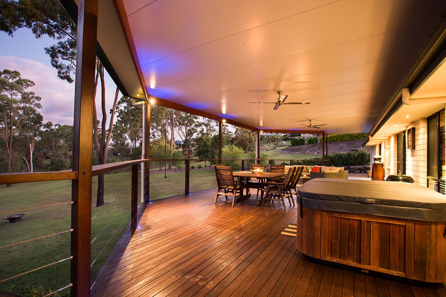 Outside you can sit back and enjoy the beautiful rural view from the very large 100m2 entertaining deck which boasts Merbau hardwood decking, stainless steel balustrading, lights with dimmers including feature LED lights, ceiling fans and power points.