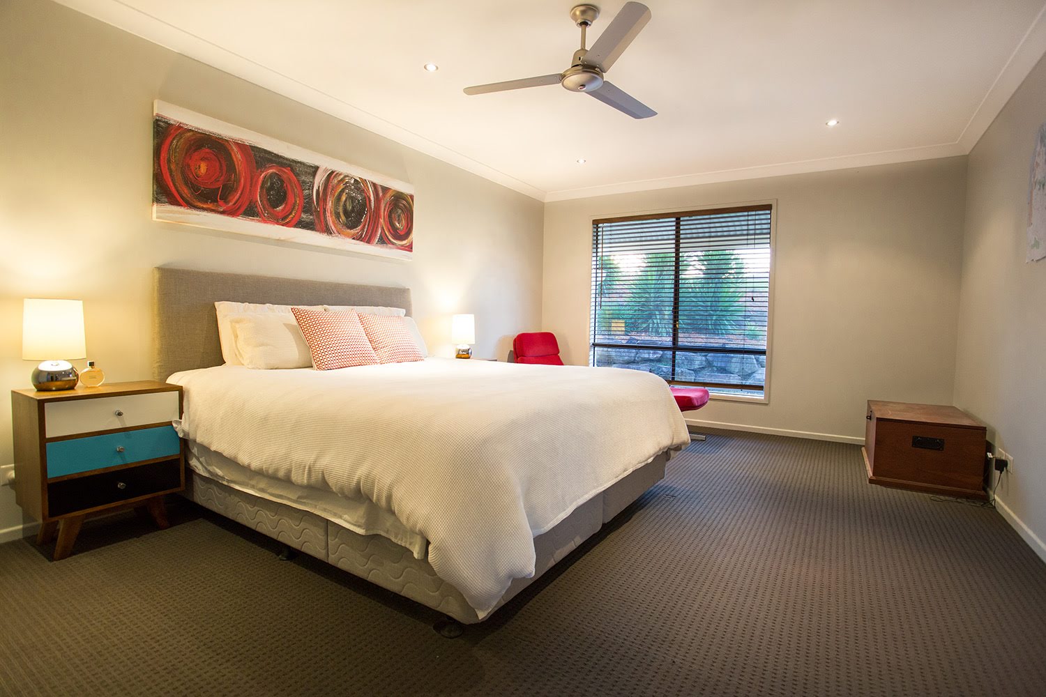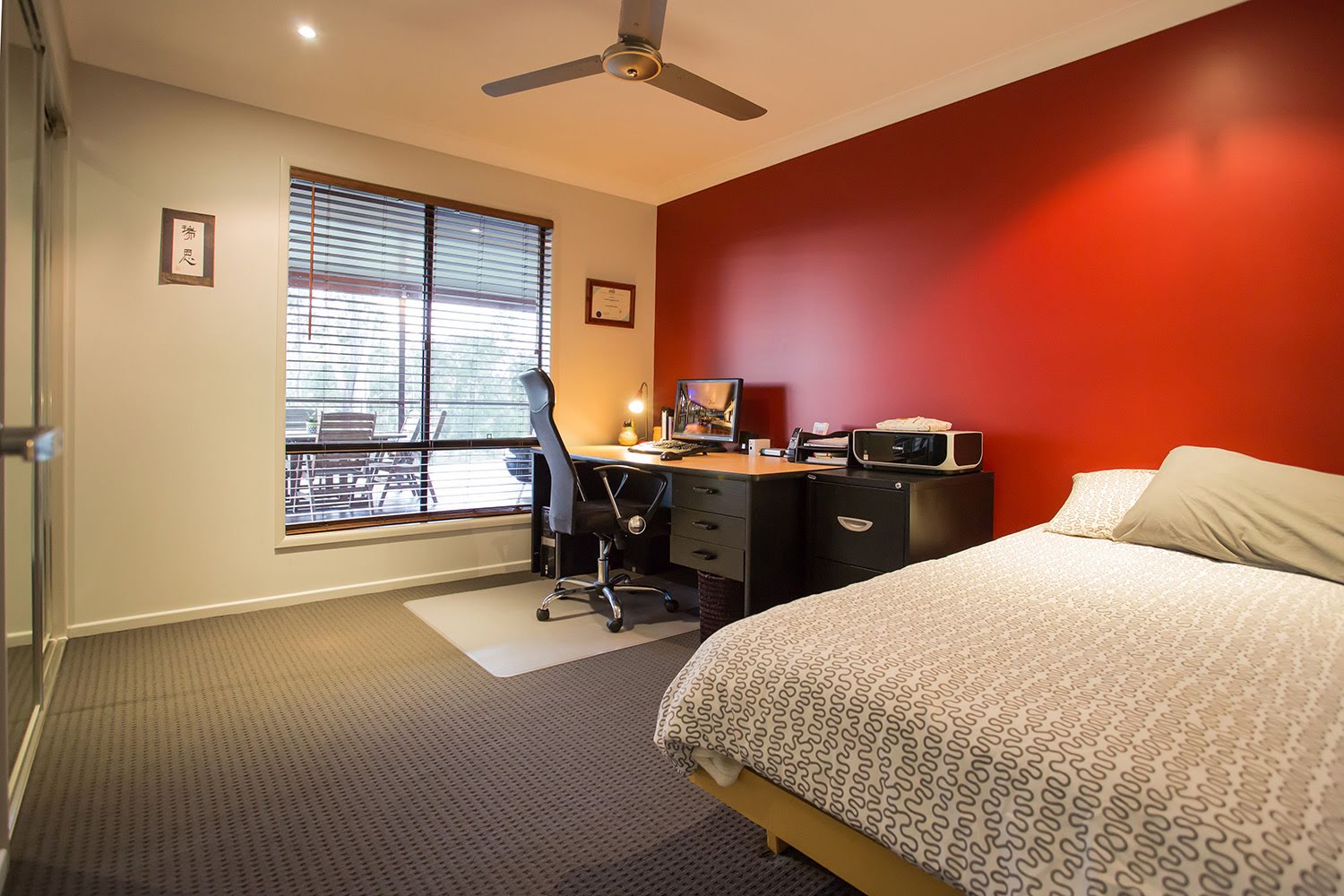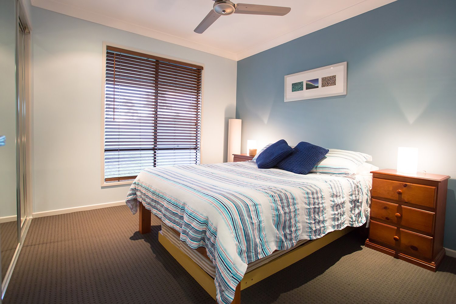 Main bedroom is very large and is complemented by a ensuite and walk in robe. It is located at the opposite end of the house to the remaining 3 bedrooms which all have built ins and ceiling fans.