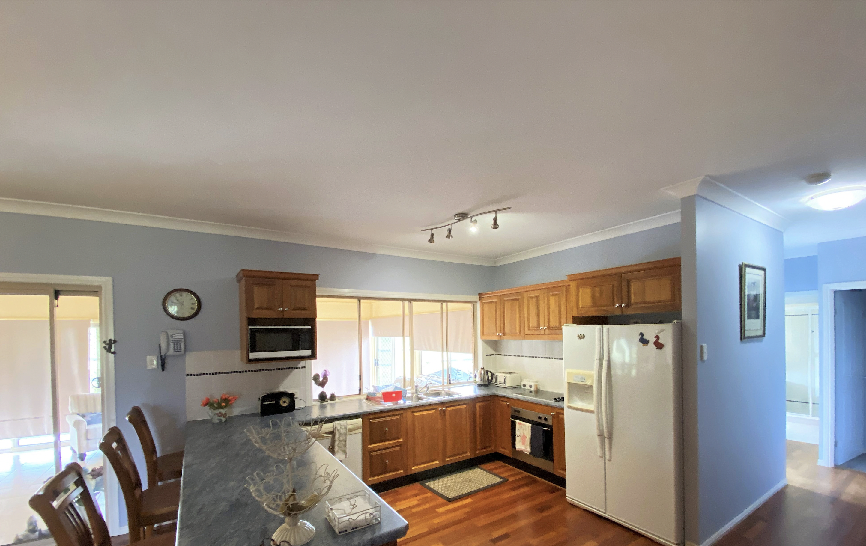 The large tasman oak kitchen with electric appliances��is centrally located the the living and dining with access out onto the enclosed rear alfresco patio.