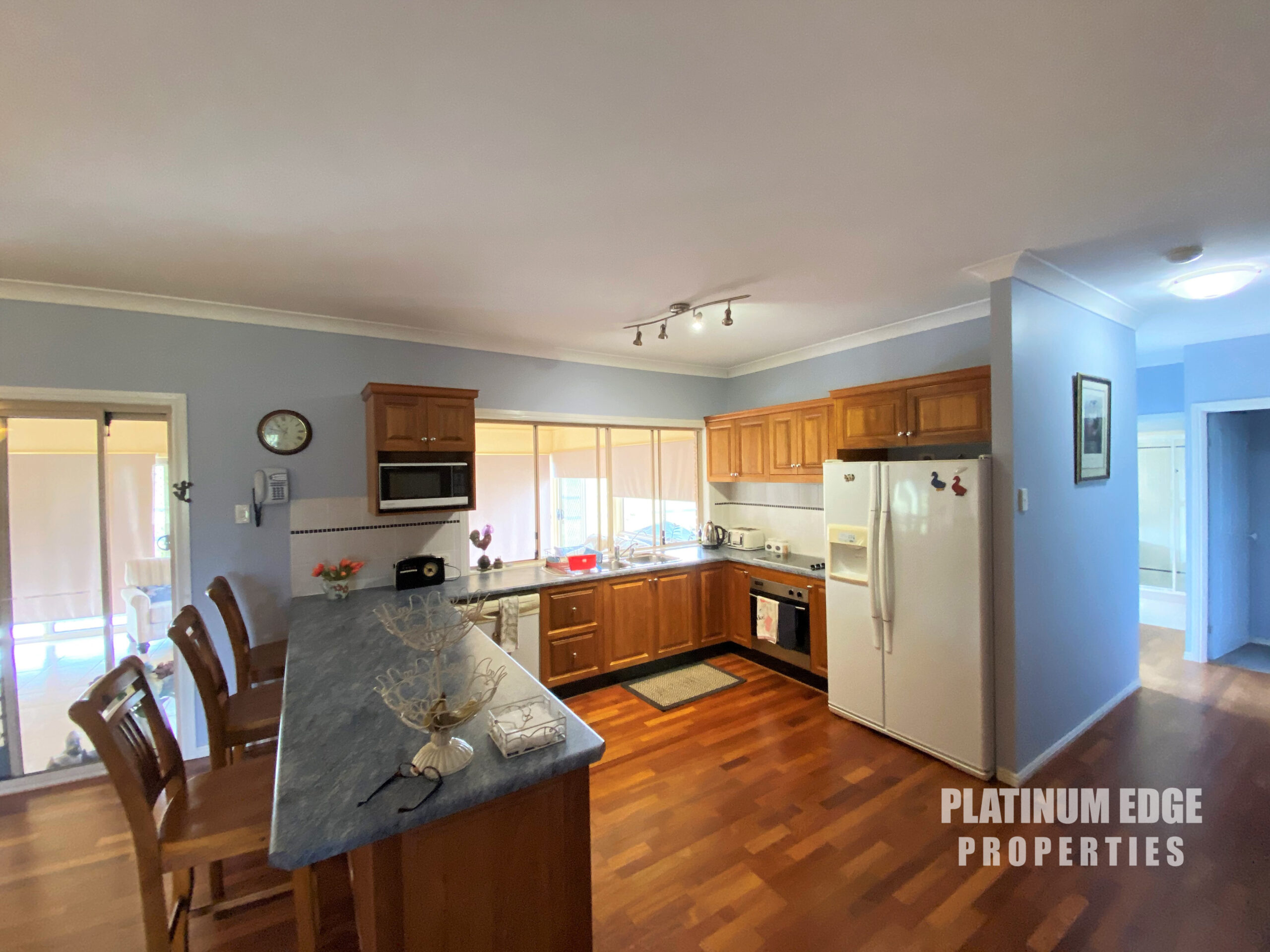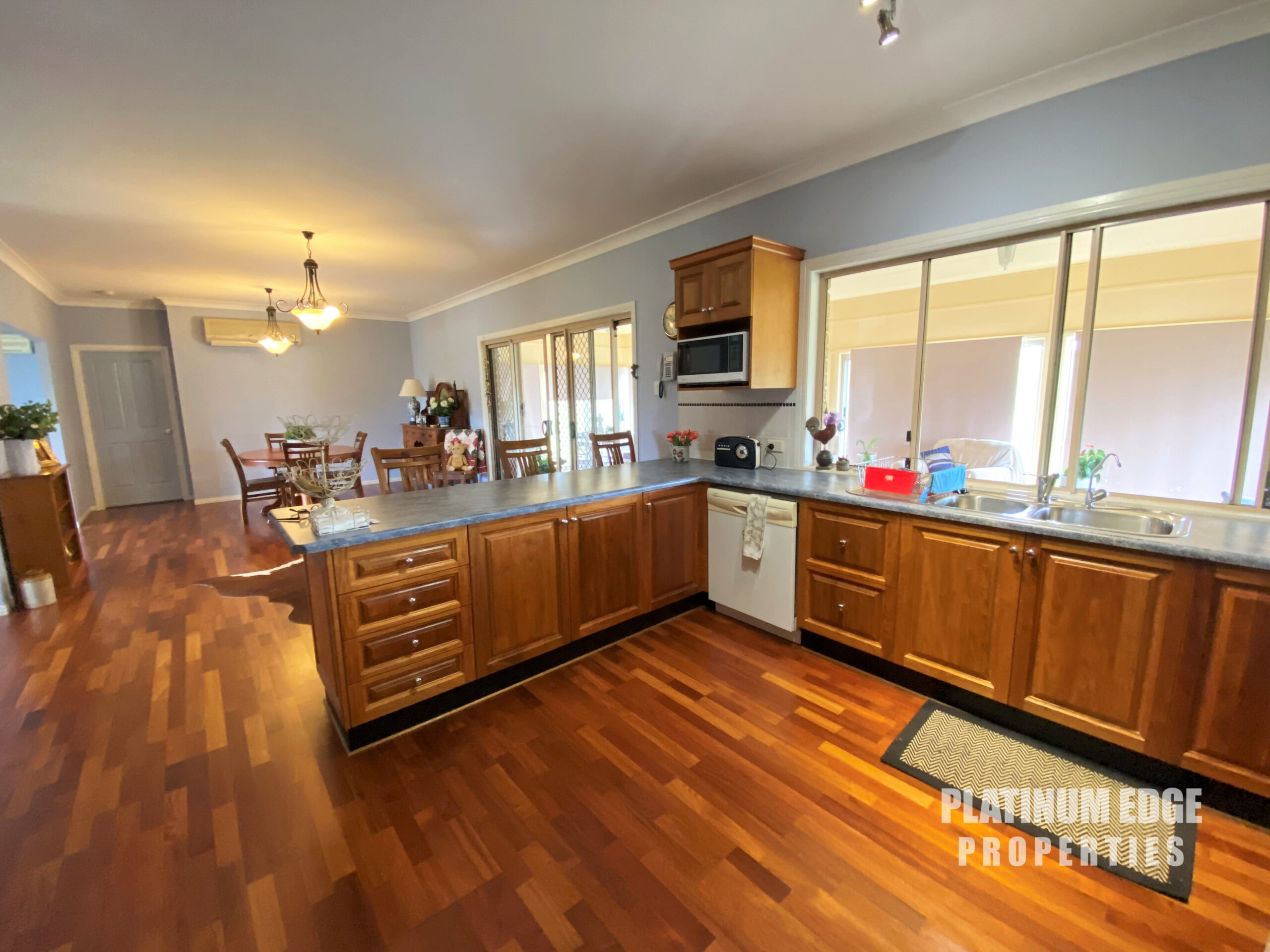 The large tasman oak kitchen with electric appliances is centrally located the living and dining with access out onto the enclosed rear alfresco patio.