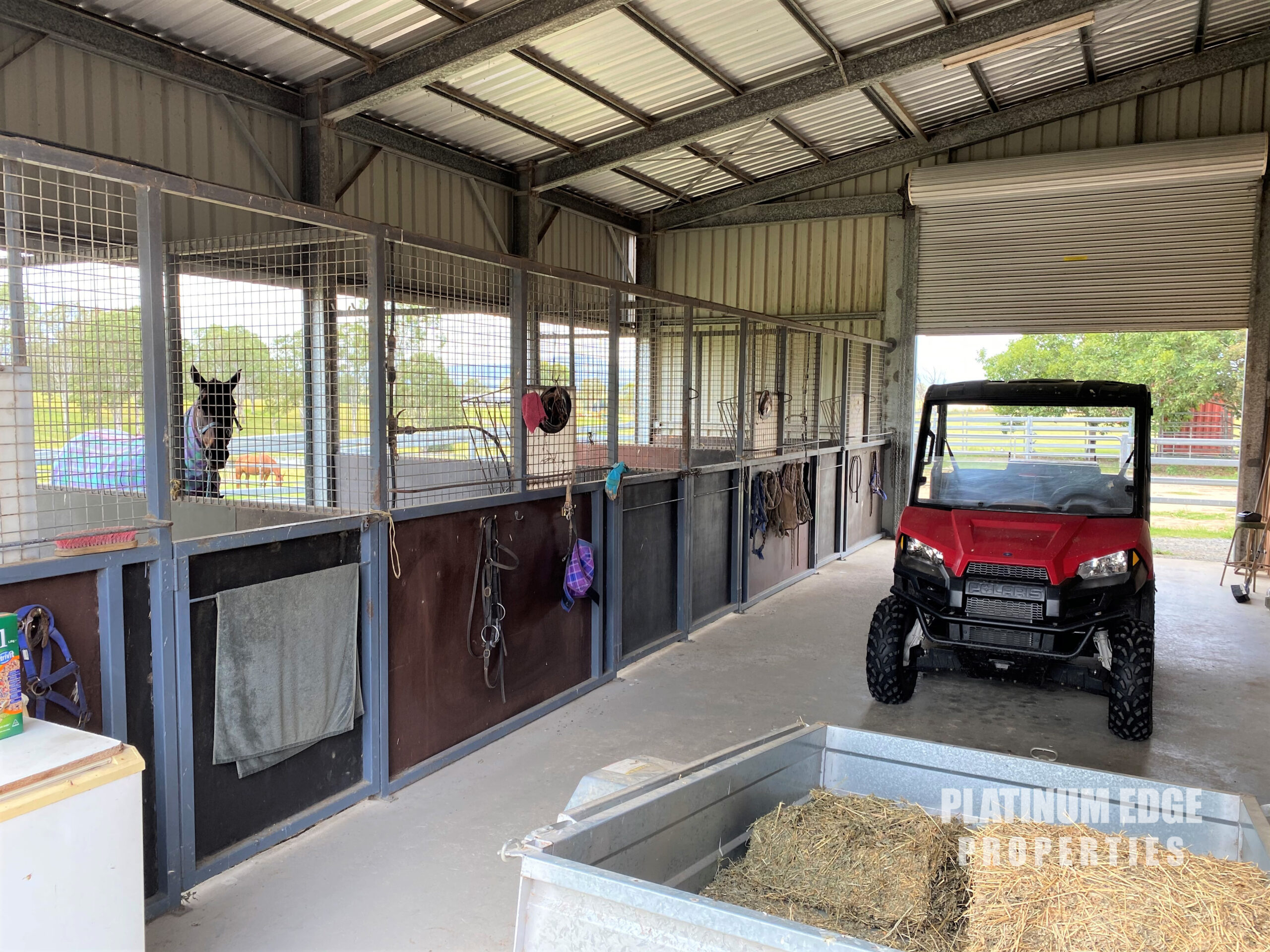 For the horse lovers you will find everything you need including 15m x 12m 4 horse Stable Complex complete with wash bay, Feed Room, Tack room and Office as well as a huge Drive through lock up shelter for Horse float and rig topped off with 3 Phase power throughout complex.