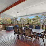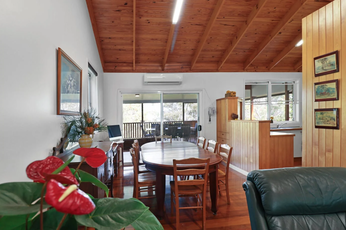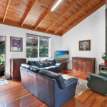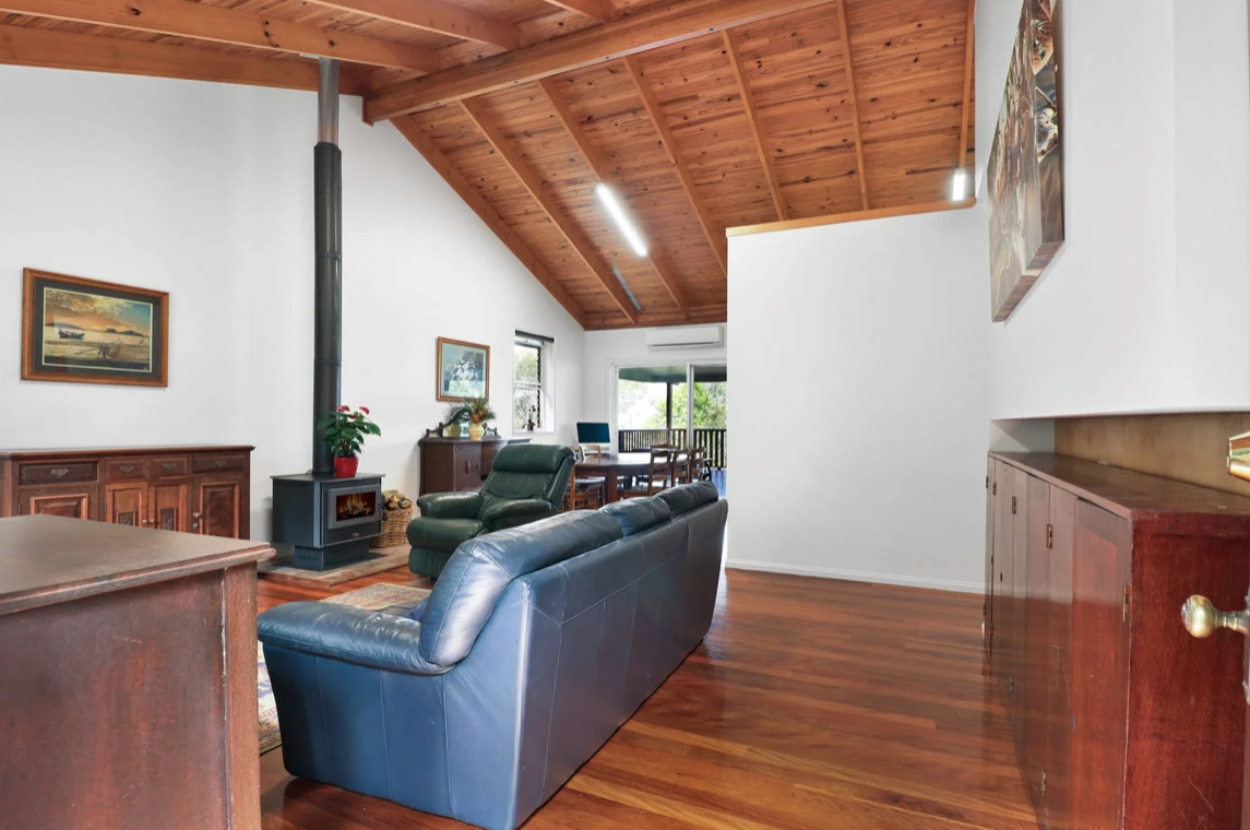 Inside, timber accents and soaring vaulted ceilings create a warm and inviting atmosphere. The home’s flowing layout offers connected living, dining and entertaining areas, ideal for both everyday comfort and special occasions. Four well-sized bedrooms, including a main suite with its own ensuite, provide private spaces for the whole family.