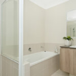 The family bathroom features a large bath and separate shower and is central to the internal laundry.