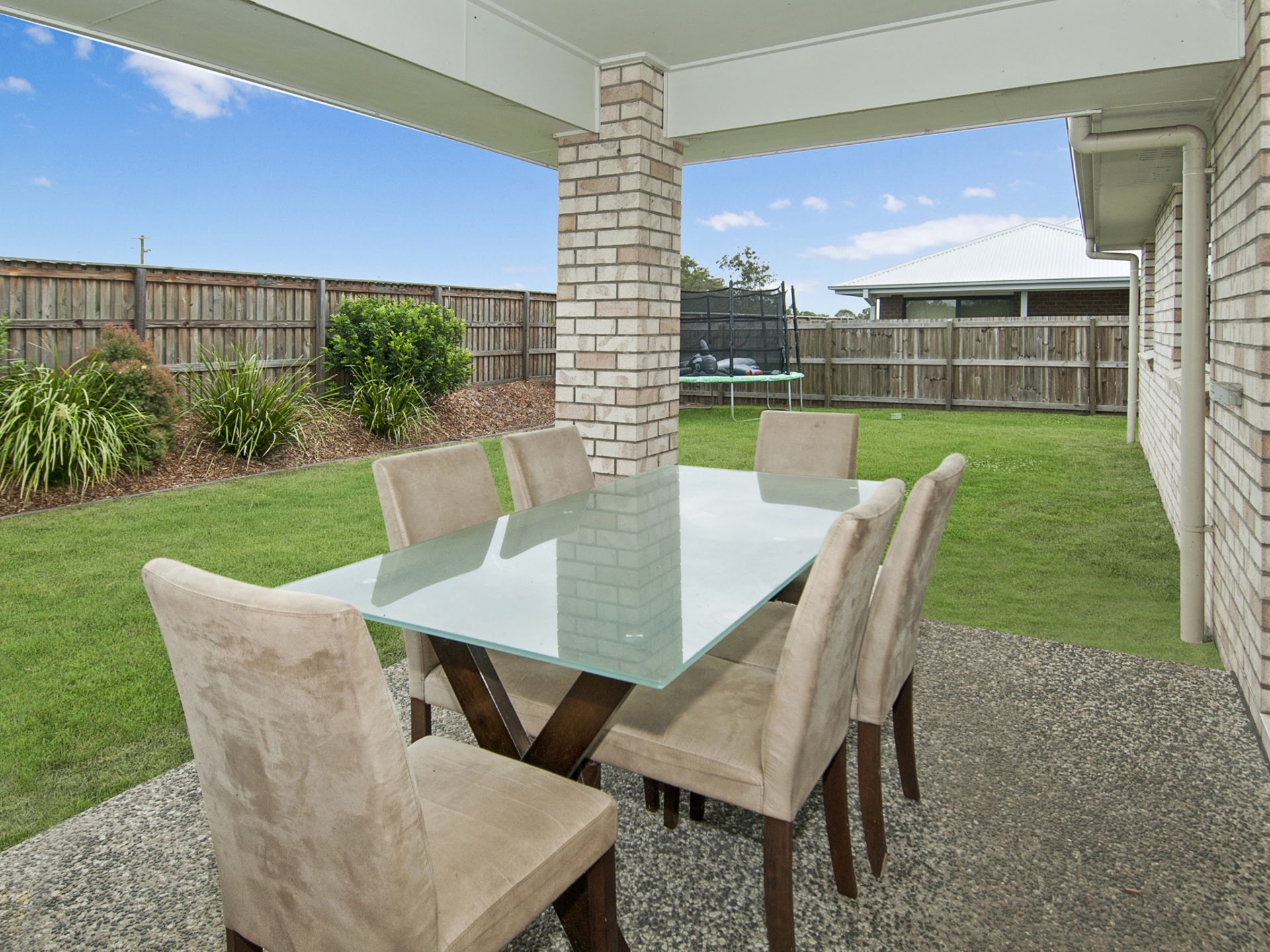 The kitchen overlooks the air conditioned, tiled, open plan lounge and dining areas with large glass door and windows overlooking the back yard.