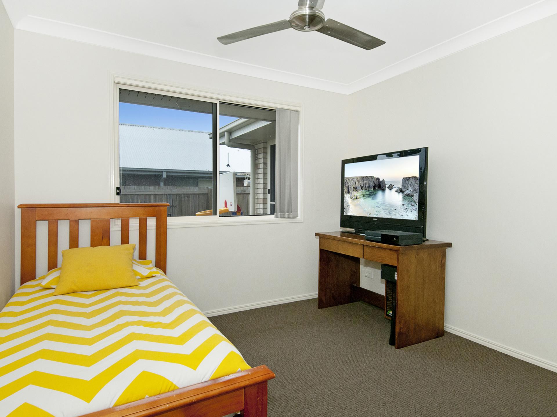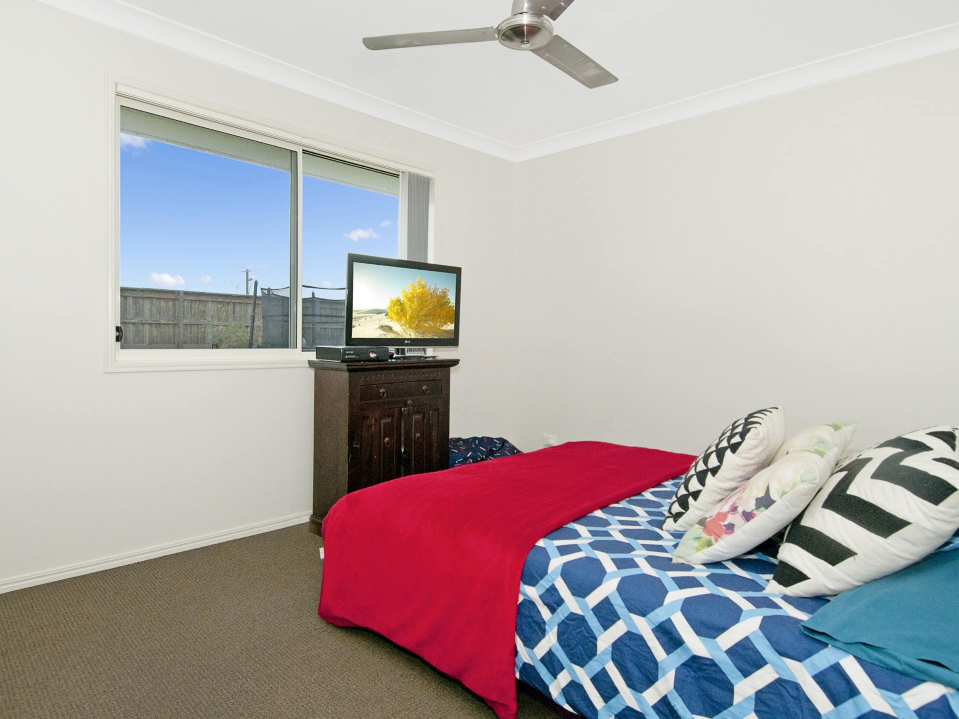 The remaining 2 bedrooms are comfortable size located at the other end of the home. All have built in robes with sliding doors and ceiling fans.