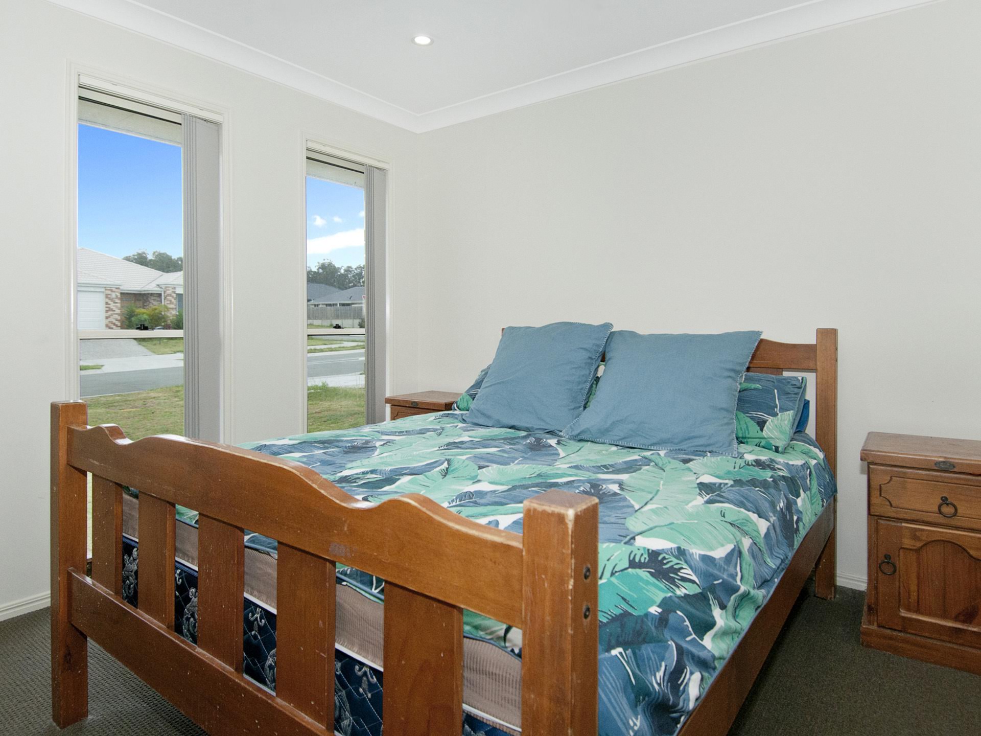 The main bedroom is set at the front of the home and features a walk in robe, a ensuite, and block out vertical blinds. Bedroom 2 is also located at the front near the main room and could be used as a home office.