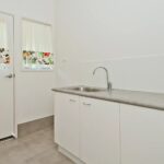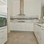 A modern white kitchen with quality appliances including gas cooktop, dishwasher also features a HUGE walk in pantry with room for a fridge freezer,