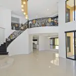 This architectural marvel is laden with premium features, merging contemporary design with Roman Palace elements. Think double-story cathedral ceilings, sleek cornices, a marble electric fireplace, and high-quality white tiles that reflect abundant natural light. The detail and quality of this home are simply second to none.