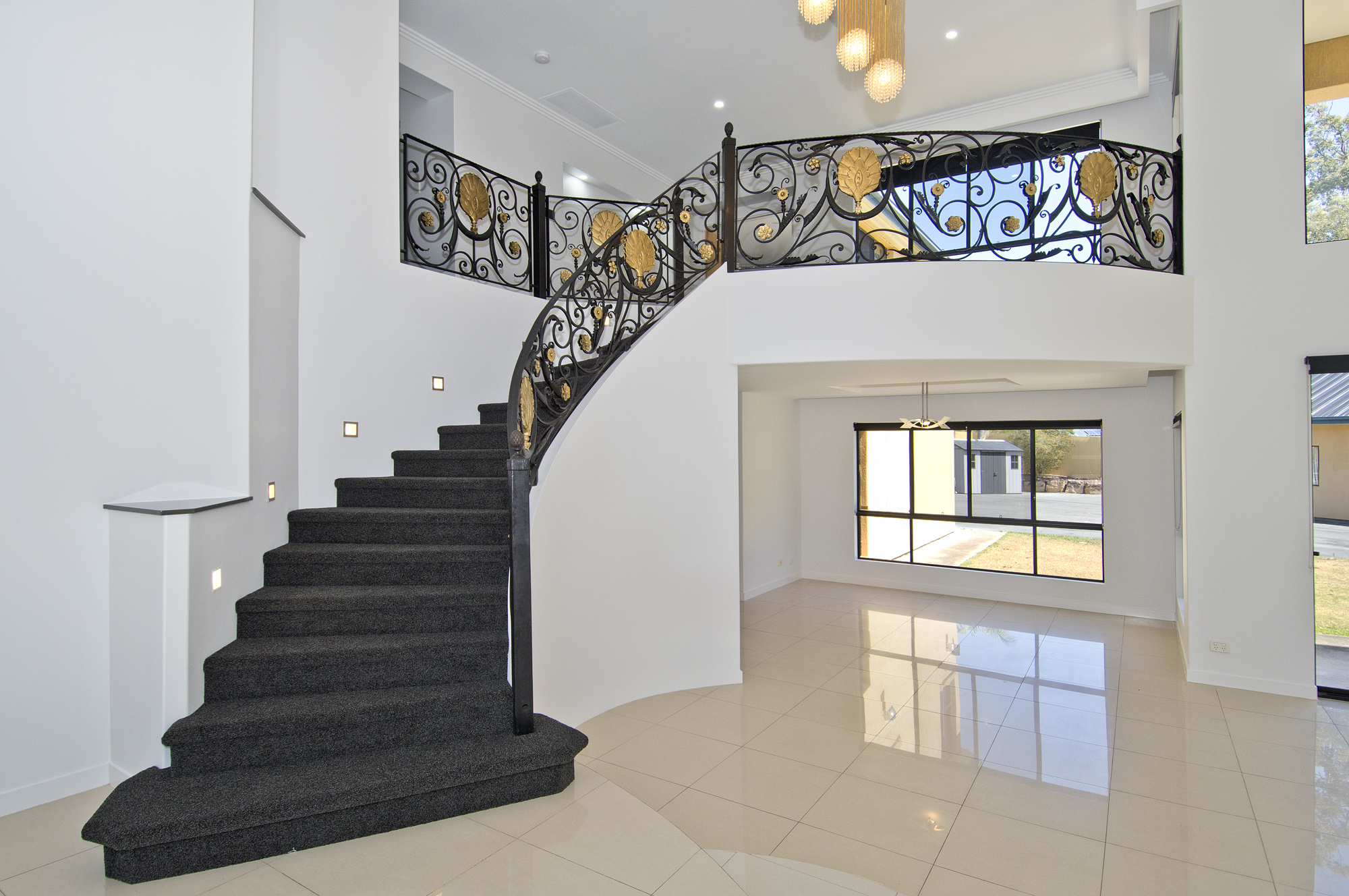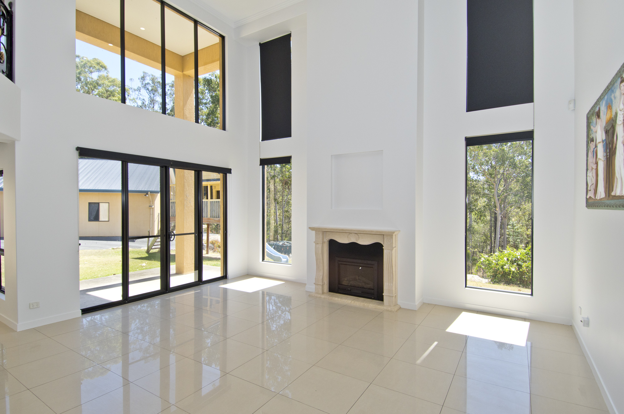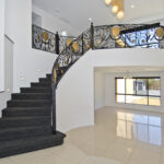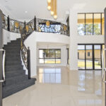 This architectural marvel is laden with premium features, merging contemporary design with Roman Palace elements. Think double-story cathedral ceilings, sleek cornices, a marble electric fireplace, and high-quality white tiles that reflect abundant natural light. The detail and quality of this home are simply second to none.