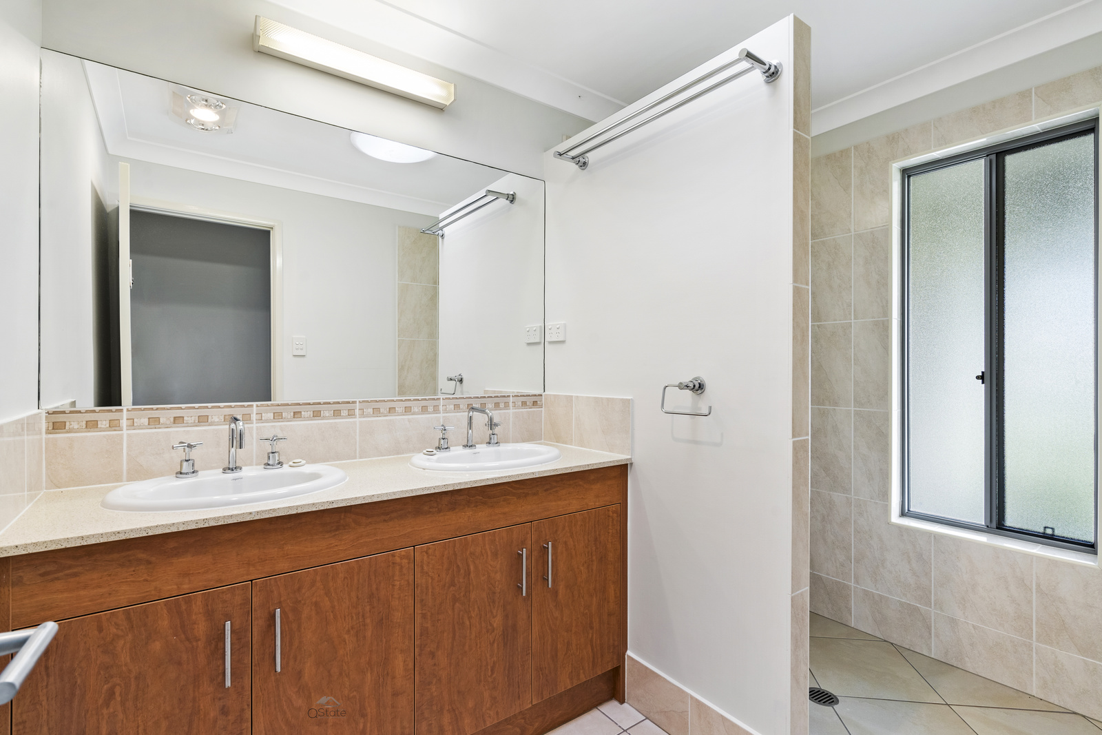 – Light and airy family bathroom with double size walk in shower, double vanities with stone benchtop