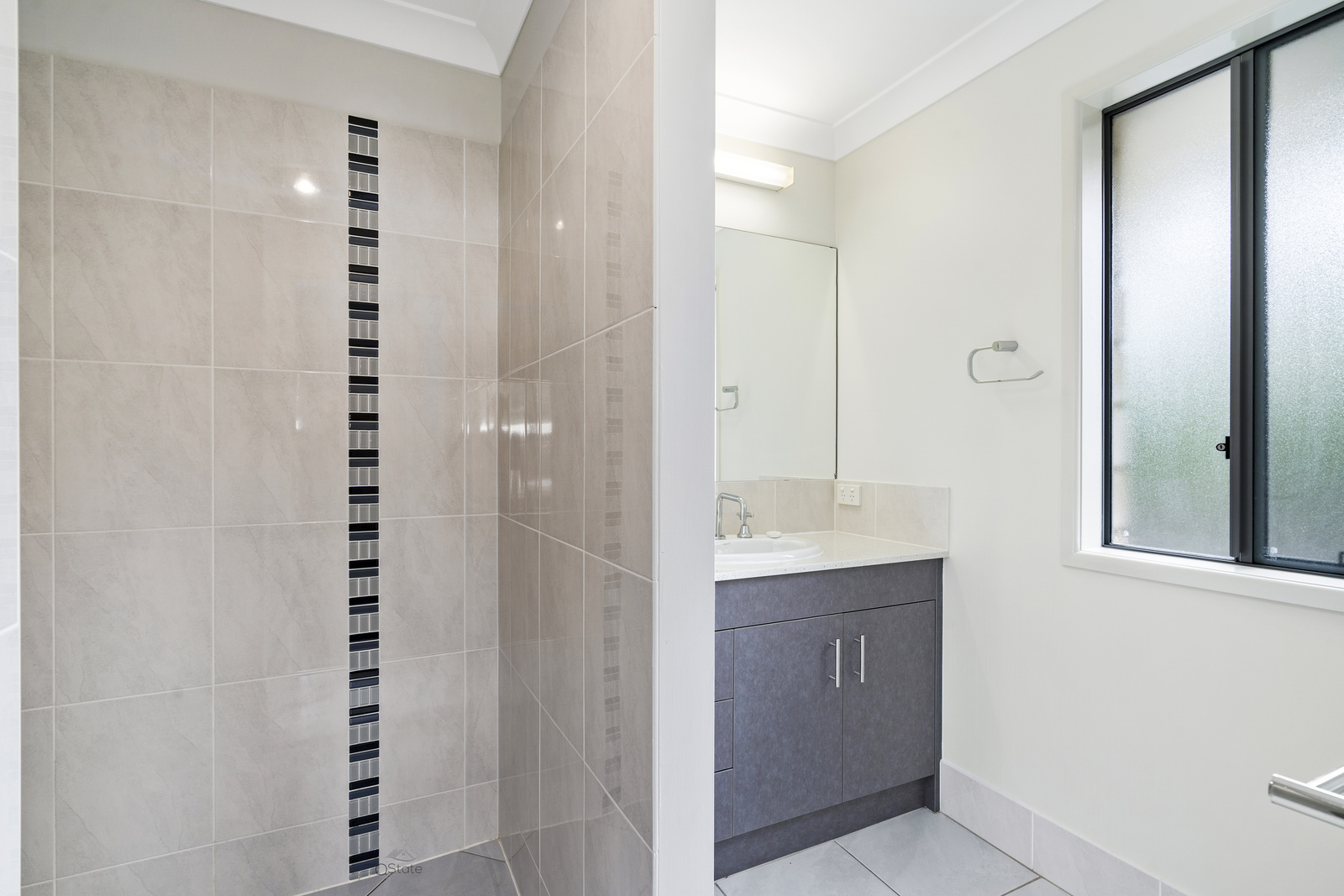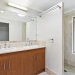 – Light and airy family bathroom with double size walk in shower, double vanities with stone benchtop