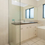 The large main bedroom features double French Door access and a walk in robe. Walking through to the ensuite you will find his and her sinks, a full sized bath and large oversize shower.