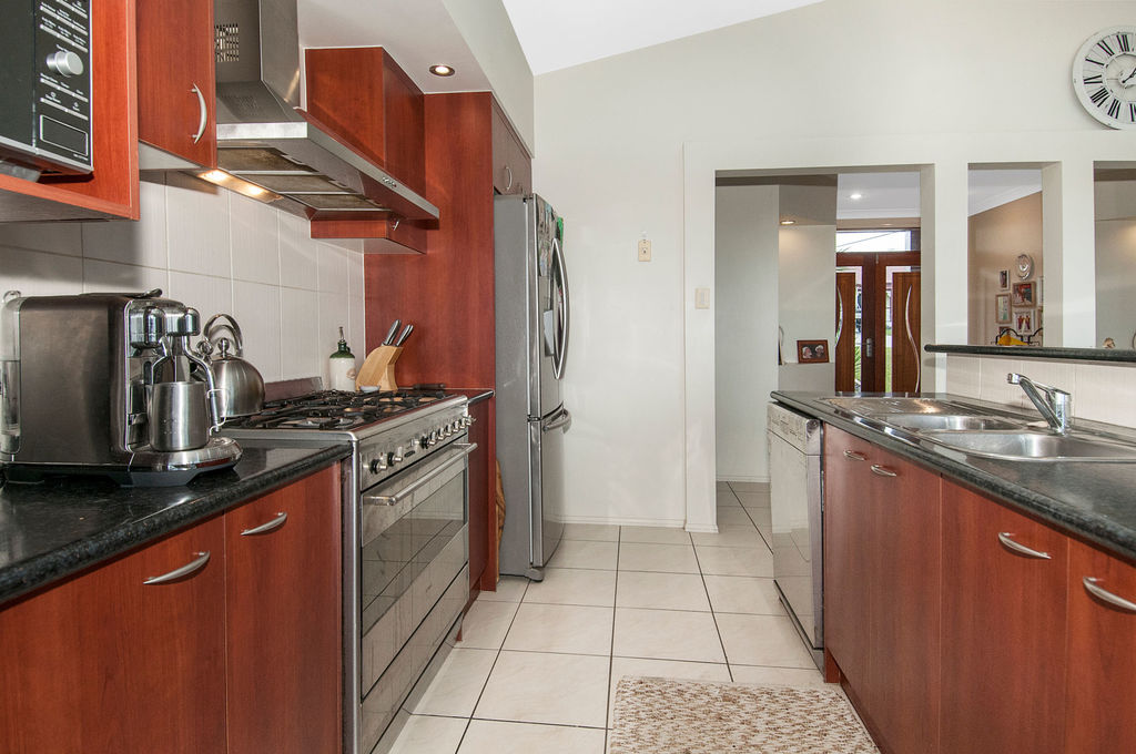 The kitchen is ready for entertaining with quality stainless steel Smeg appliances including a gas cooktop, oven, range hood and dishwasher. The double stainless steel sink and ample kitchen cupboards will make cooking a breeze and have all your kitchen needs covered.