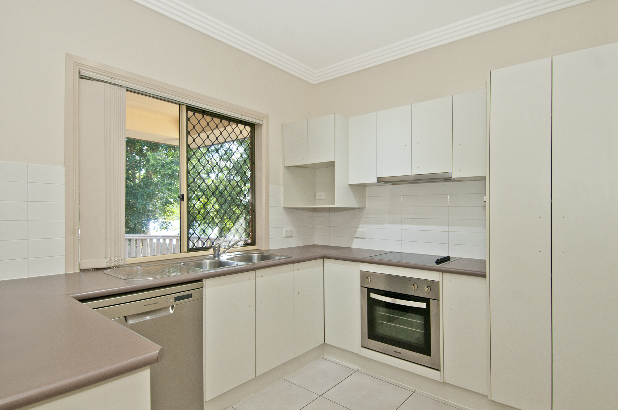 The kitchen features plenty of bench and storage space, dishwasher, electric cooktop, oven and overlooks the patio and back garden.