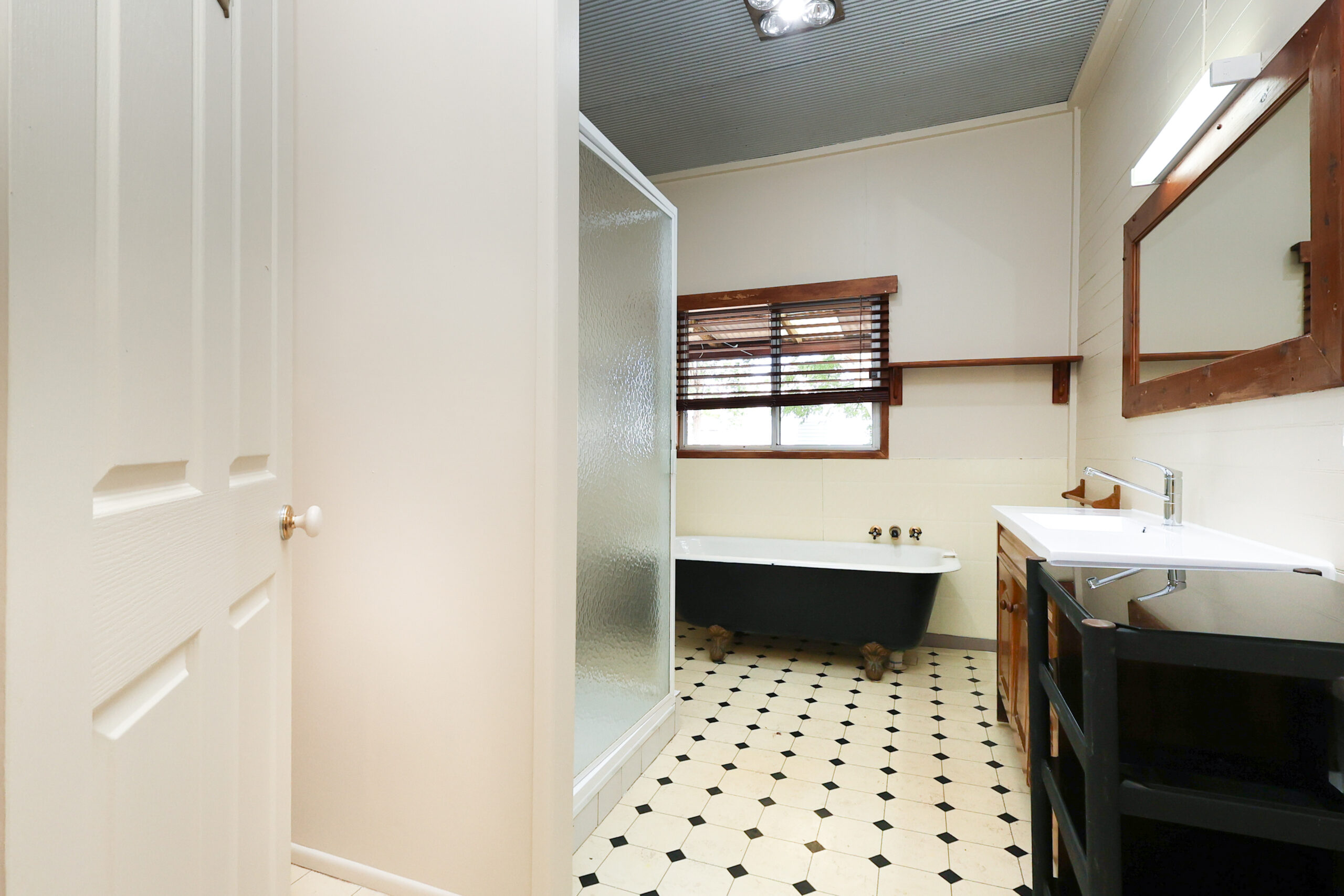 The property offers four bedrooms, a large lounge and family room with polished timber floorboards, and an original kitchen full of character. Comfort is assured year-round with split system air conditioning. The home includes two toilets and a charming bathroom complete with a classic claw bath tub.
