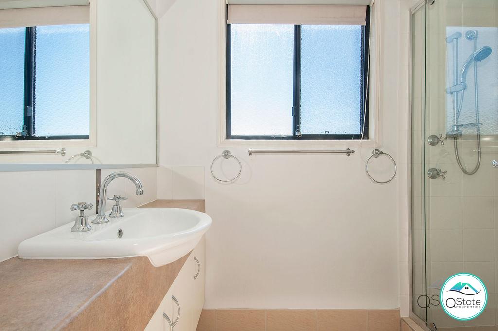 The bathroom has a large double sized shower whilst the toilet and laundry are located separately.