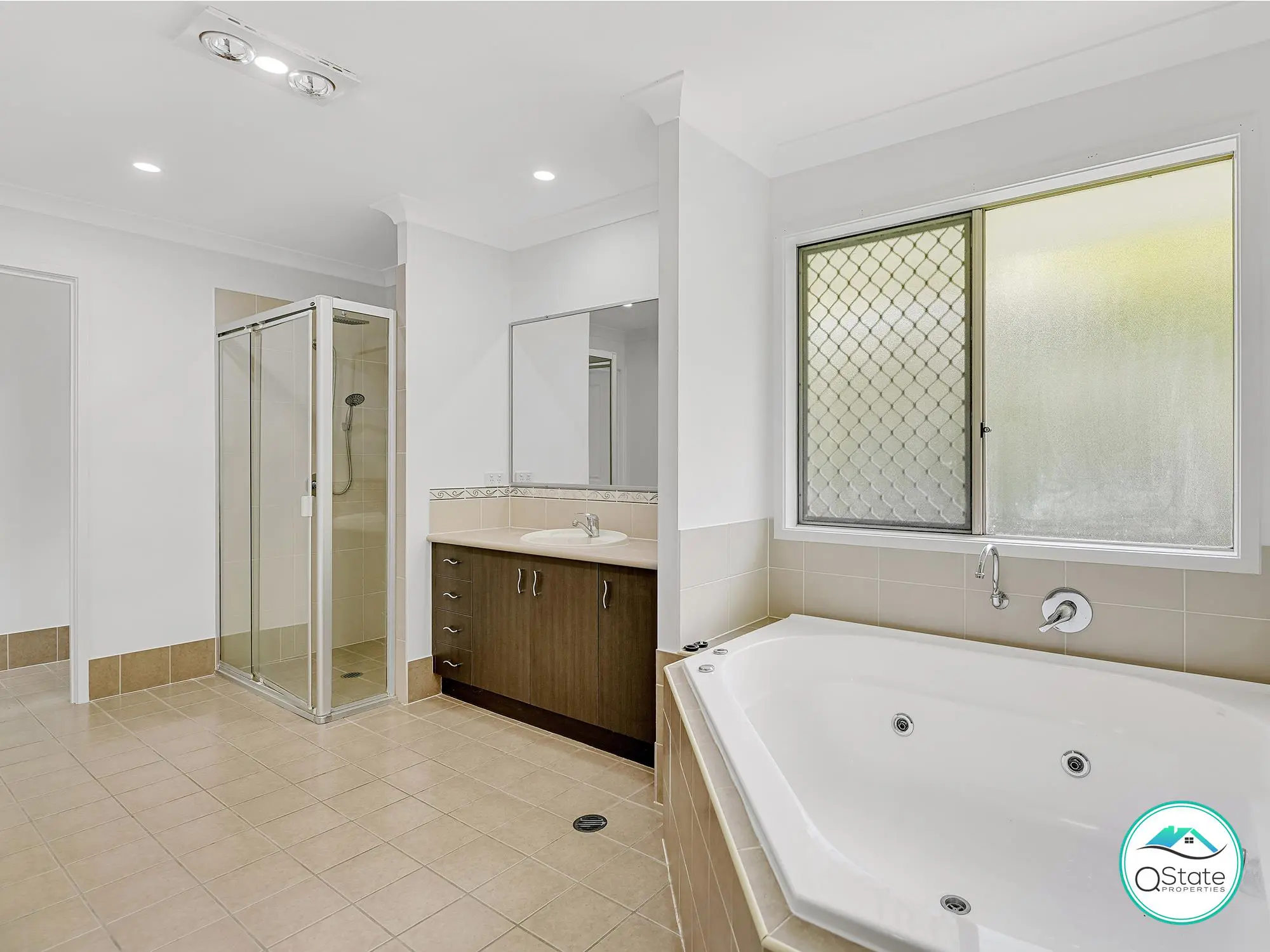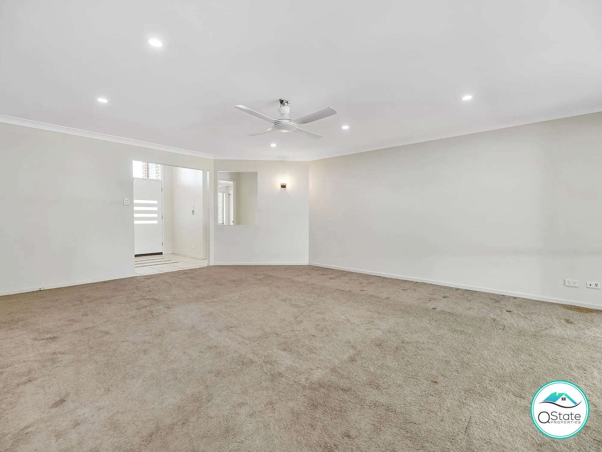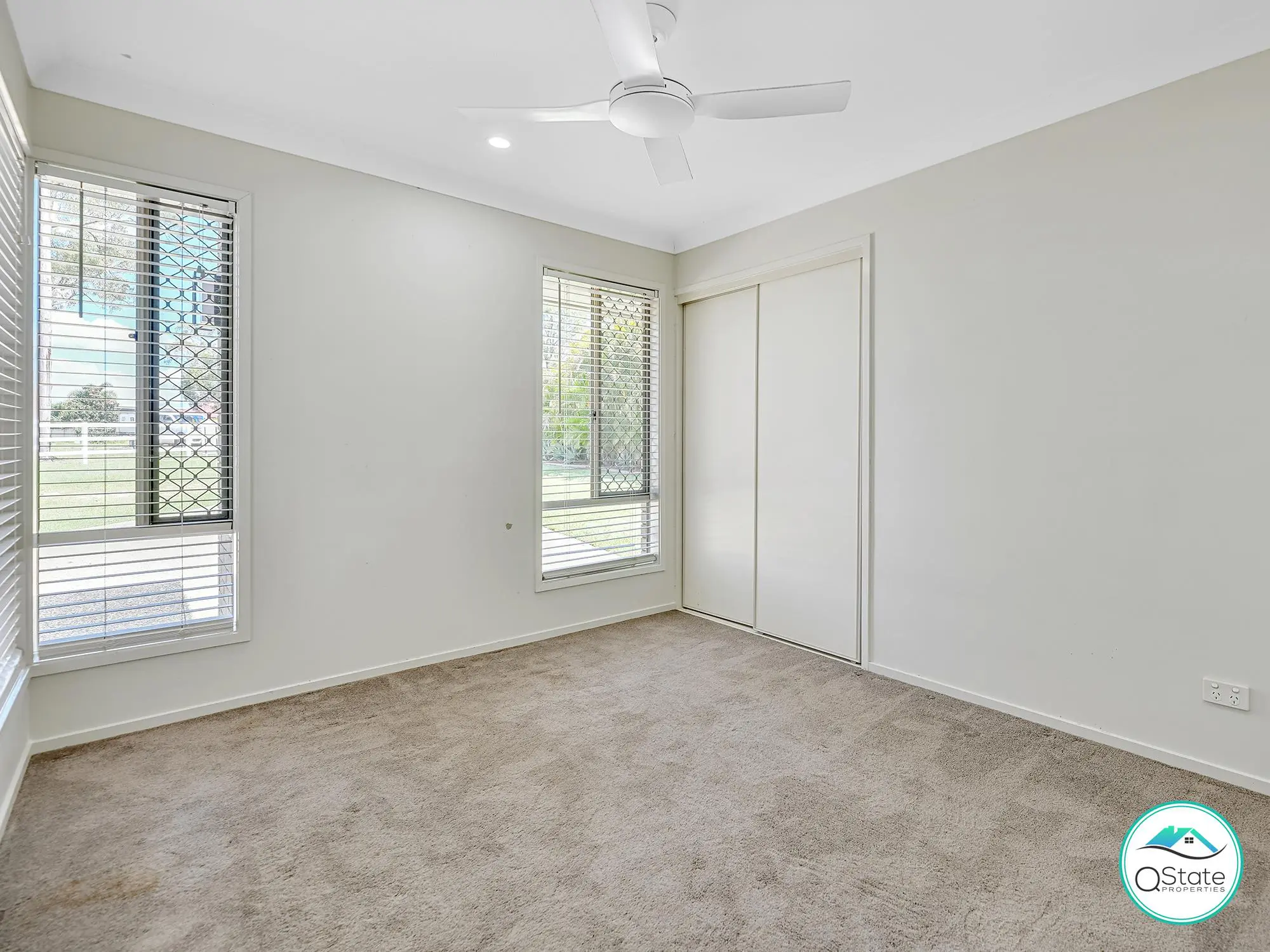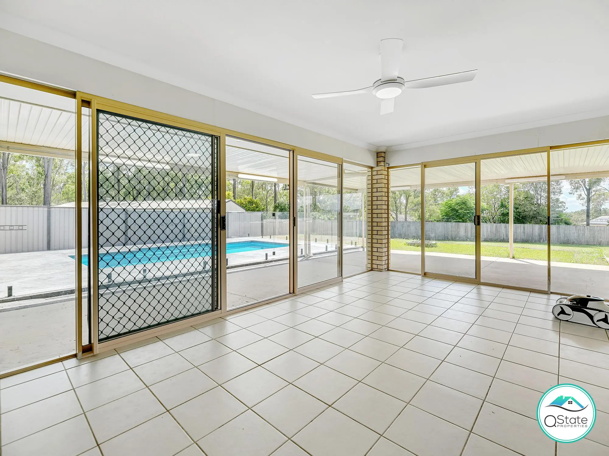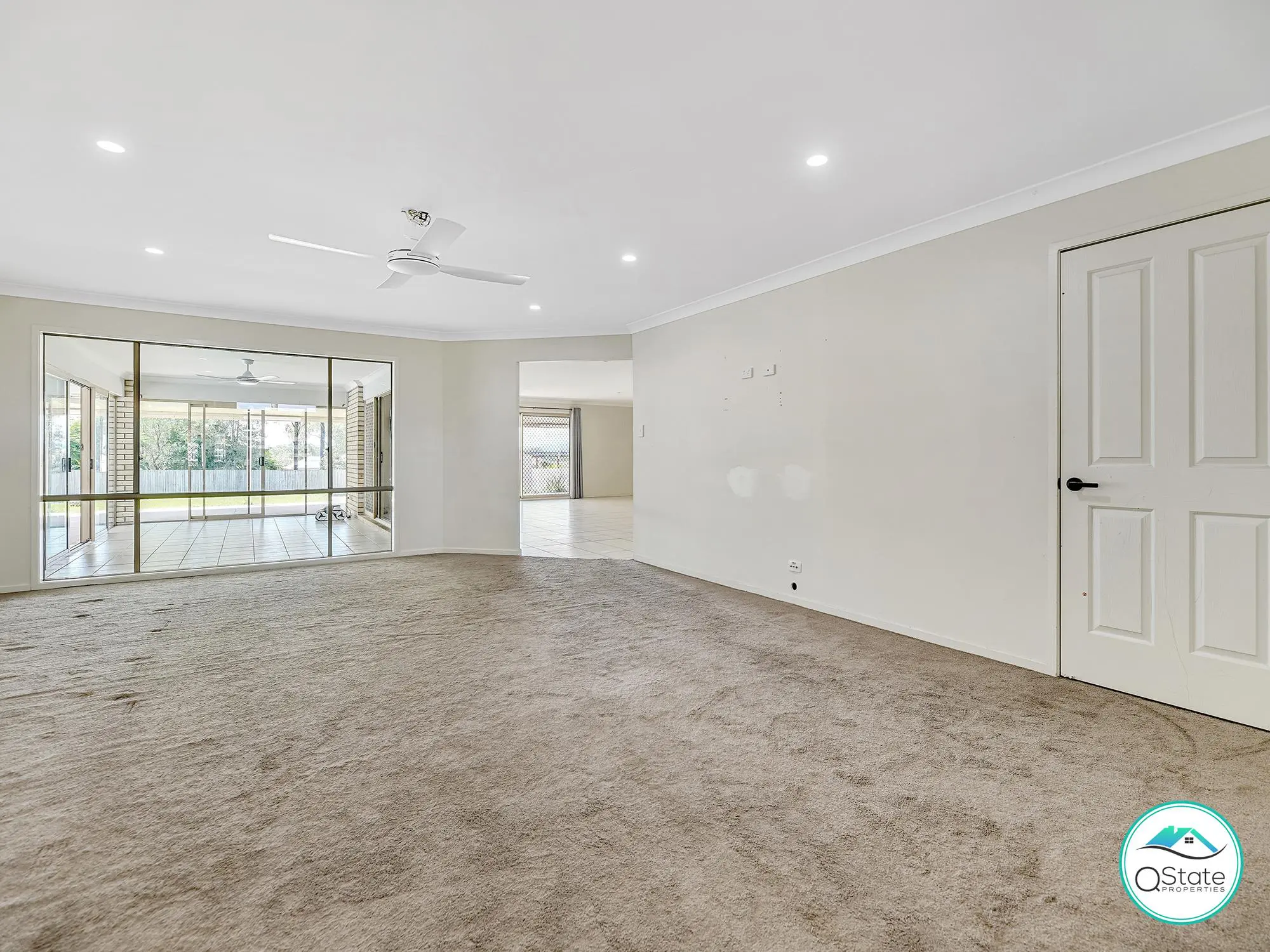 Nestled atop Silverwood Drive in the charming Flagstone estate, this impeccably maintained home awaits a new family to make it their own! This residence offers a warm welcome through grand double timber and glass doors to a high entrance, setting the tone for the remarkable features within.
