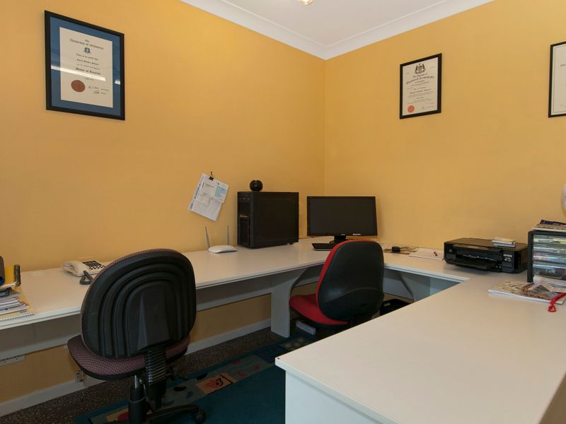 Also on the main floor are 3 bedrooms all with built in robes, a spacious family bathroom and built in office, perfect for those who work from home