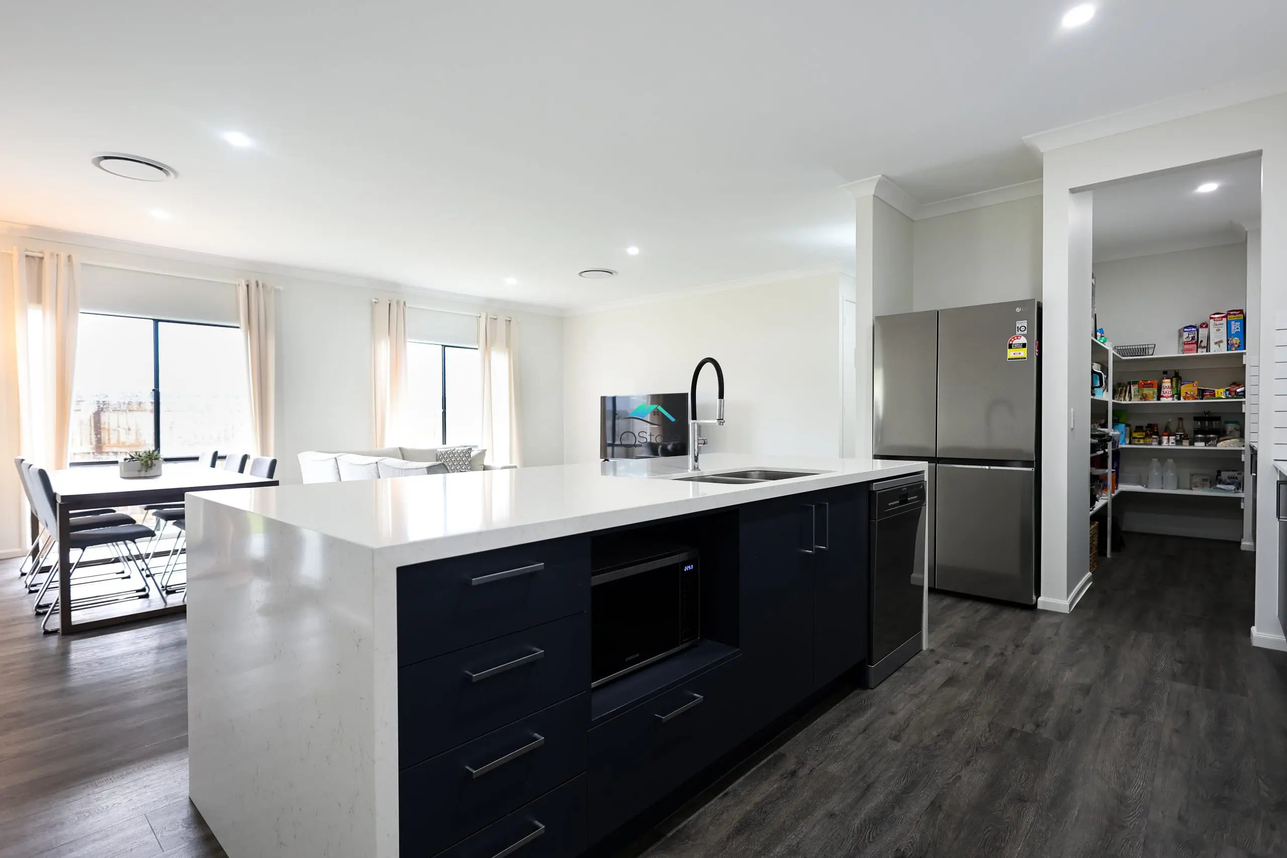 An impressive build by Burbank the spacious 4 bedroom home features 9ft ceilings, extra wide entrance hallway opening onto a light and airy open plan kitchen, living, dining room with ducted air conditioning controlled by an app with 7 zones.