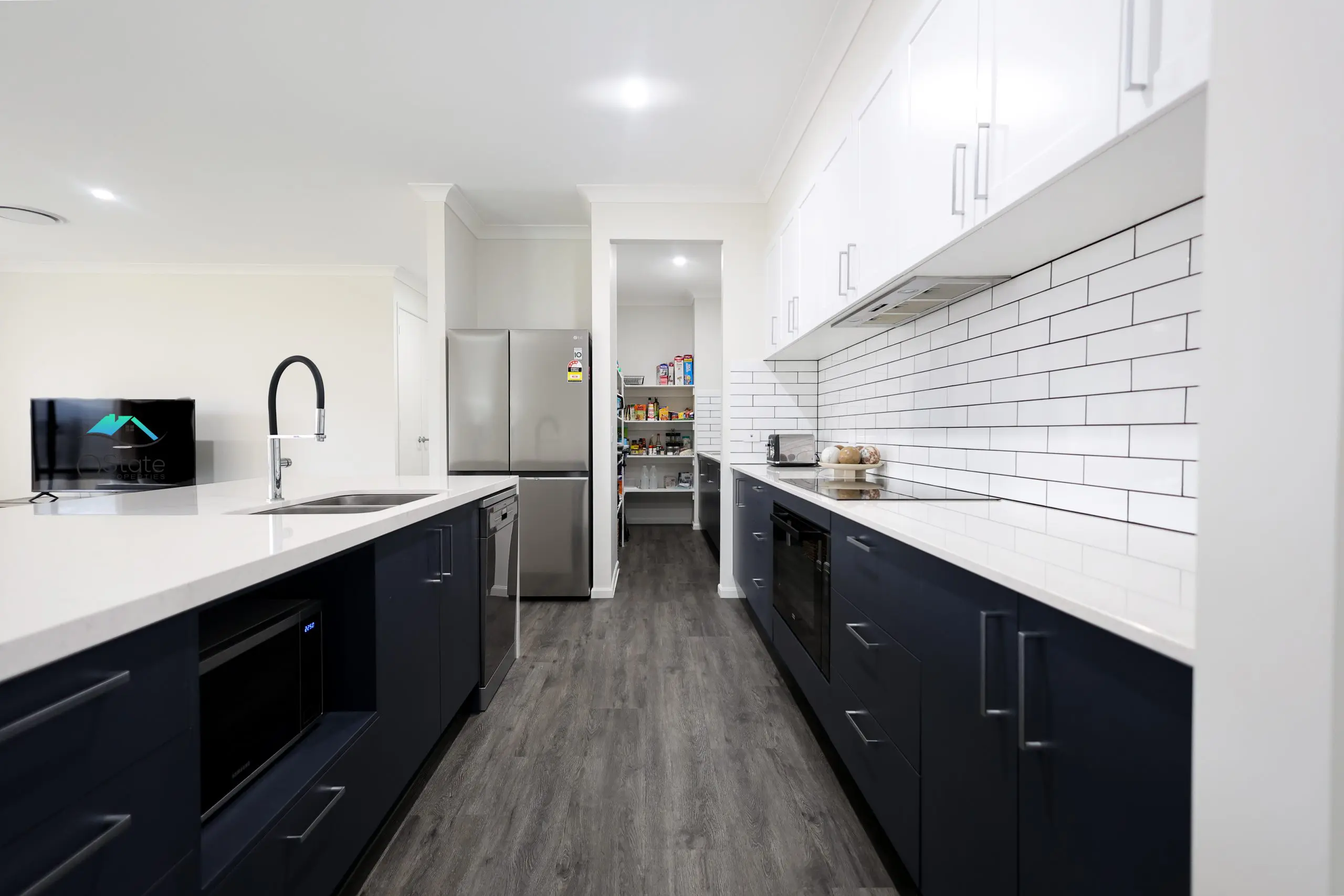 The kitchen has been finished to a high standard including 40mm stone benchtops to the island, very on trend navy blue cabinetry complimented by white shaker style uppers, this theme continues through to the butlers pantry. The home cook is well catered for with 900mm electric appliances, smeg dishwasher and space large enough for a double fridge