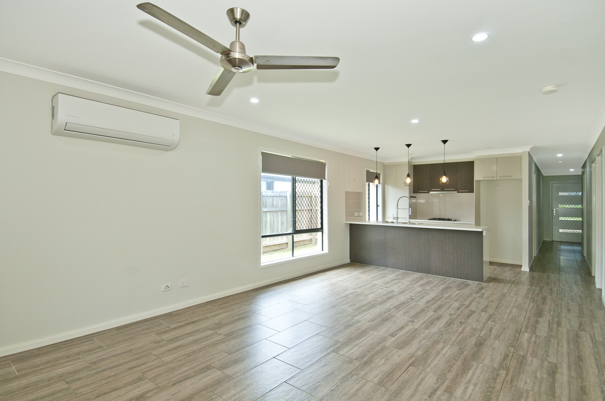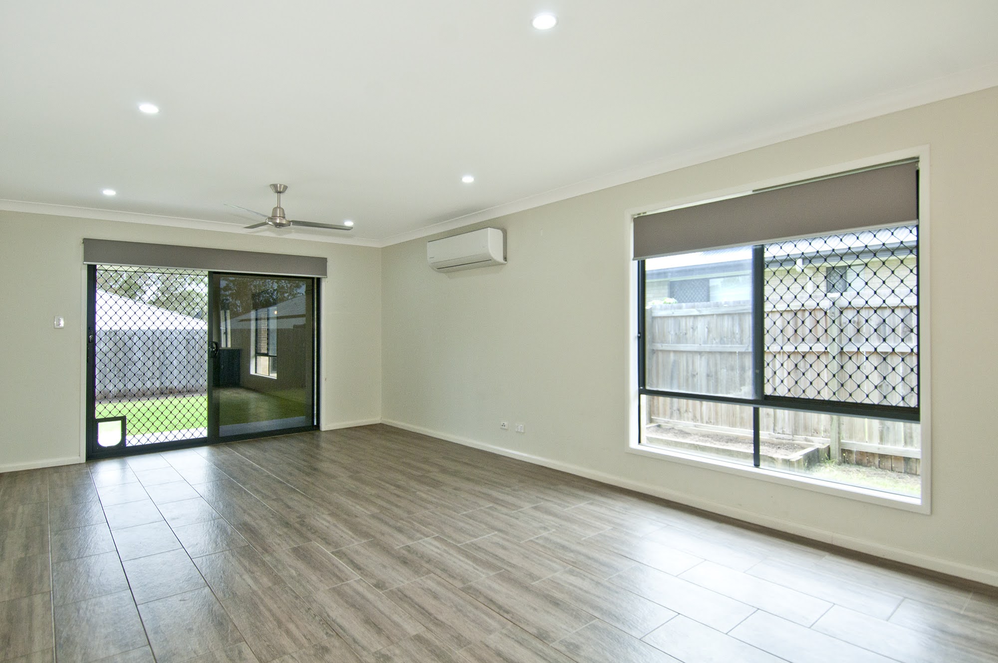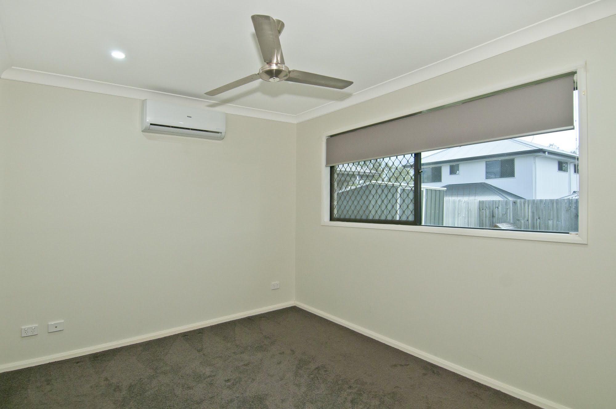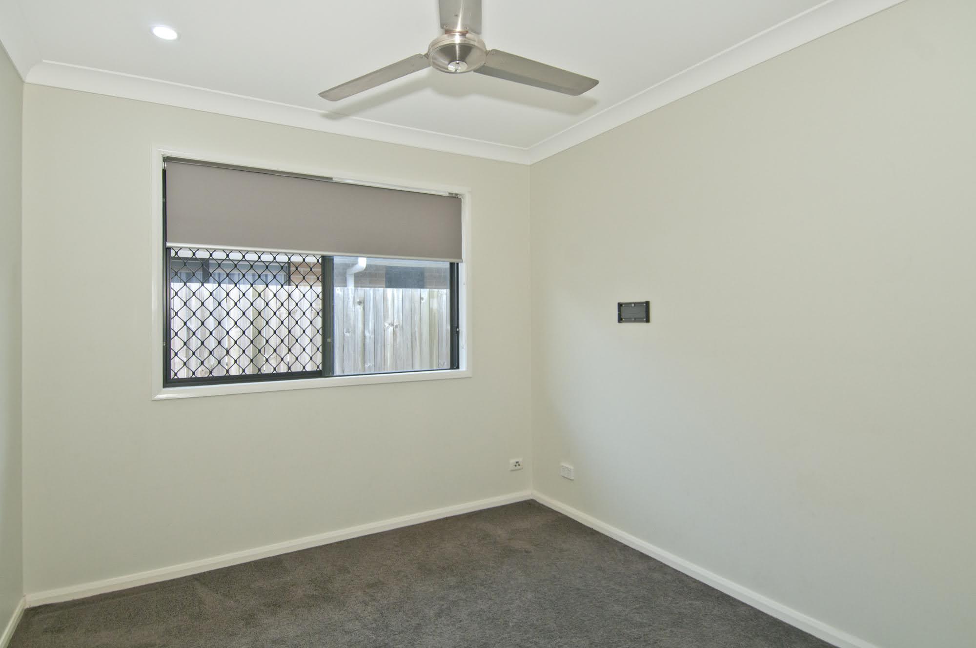 The master suite with ensuite and walk in robe, air-conditioning and block out blinds is located at the back of the home. All bedrooms feature block out roller blinds, ceiling fans along with the front bedroom having tinted privacy glass and additional air-conditioning.