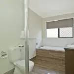 The master suite with ensuite and walk in robe, air-conditioning and block out blinds is located at the back of the home. All bedrooms feature block out roller blinds, ceiling fans along with the front bedroom having tinted privacy glass and additional air-conditioning.