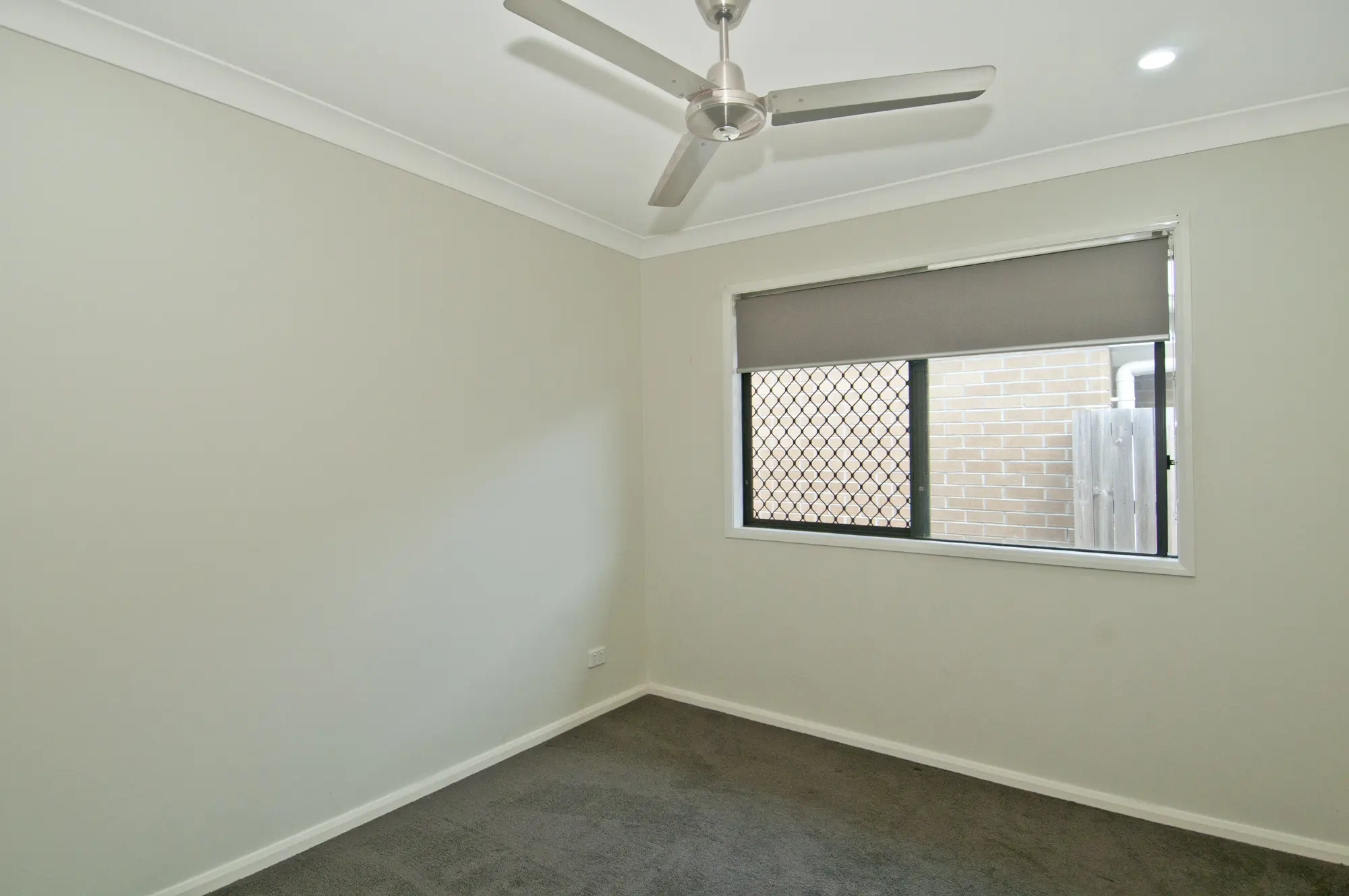 The master suite with ensuite and walk in robe, air-conditioning and block out blinds is located at the back of the home. All bedrooms feature block out roller blinds, ceiling fans along with the front bedroom having tinted privacy glass and additional air-conditioning.
