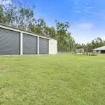 Tradies – We have found your 6 x 12 shed – tick; fully lined – tick; 3 bays plus workshop & shelving – tick; Ceiling fan and power – tick; fully plumbed with rain water tank and pump – tick; great side access from the house to the shed – tick!!!