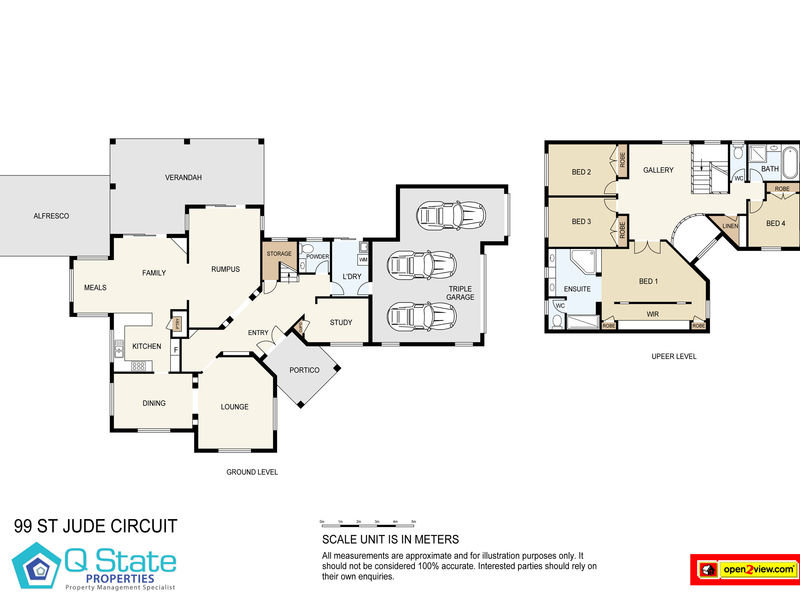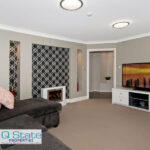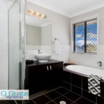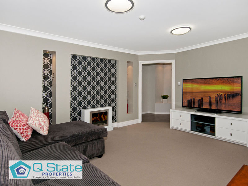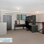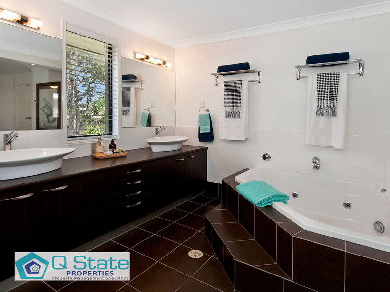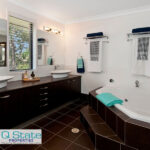 Upstairs features quality appointed Master Suite with walk through robe, large open ensuite with double shower, double vanity, and corner spa bath.