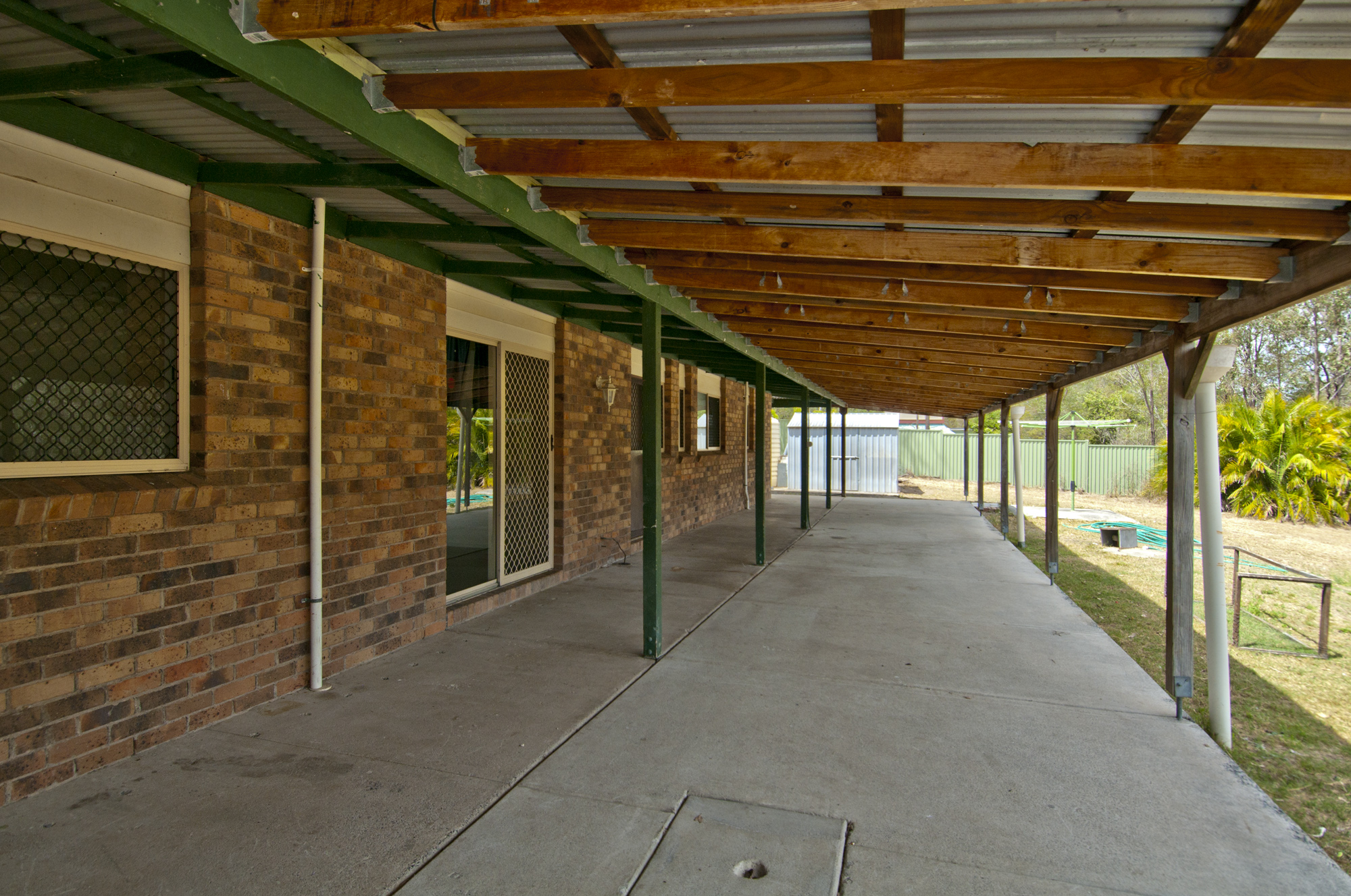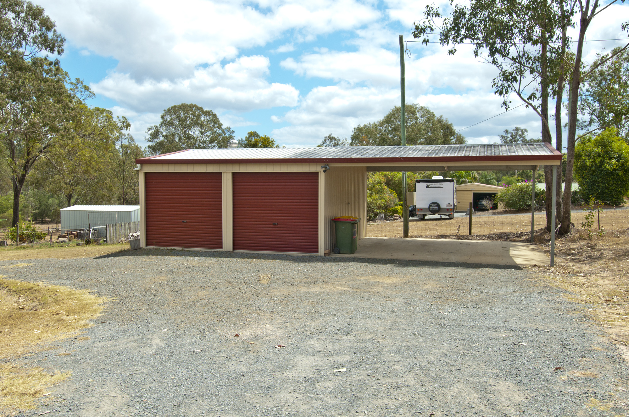 Drive in and park your cars, caravan and boat in the double lockup shed with attached double carport; power & lights connected.