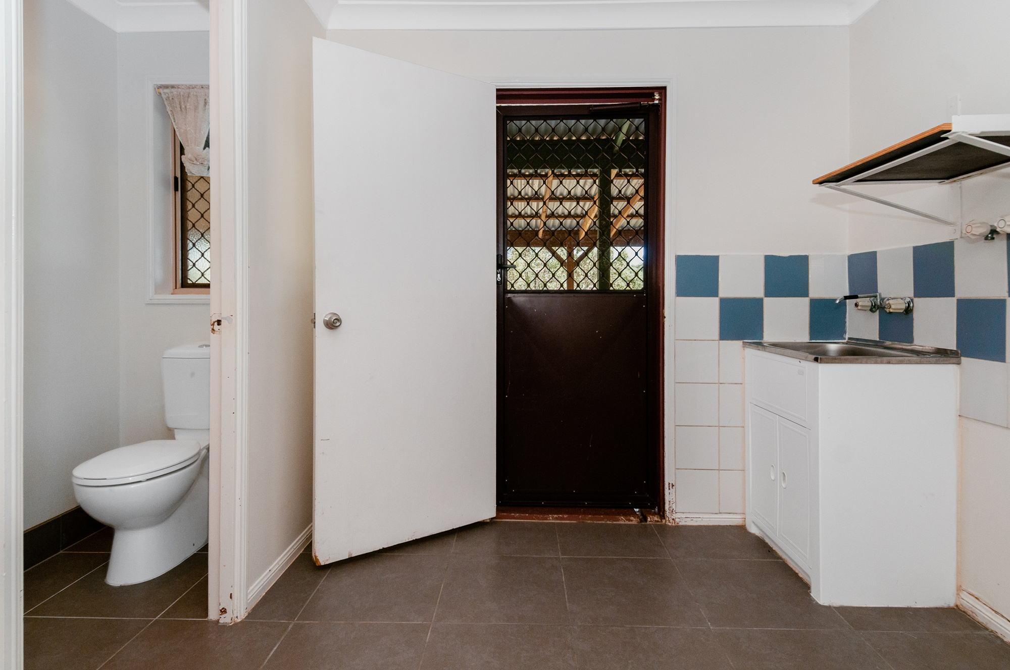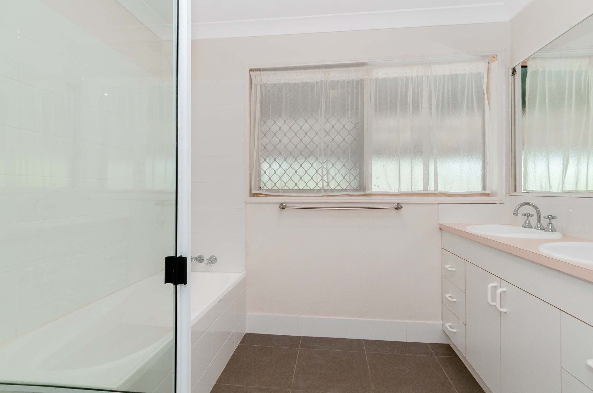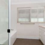 A great size bathroom has dual vanities and a separate shower and bath. The toilet was well thought of located in the laundry area which is very handy for easy access from the patio.