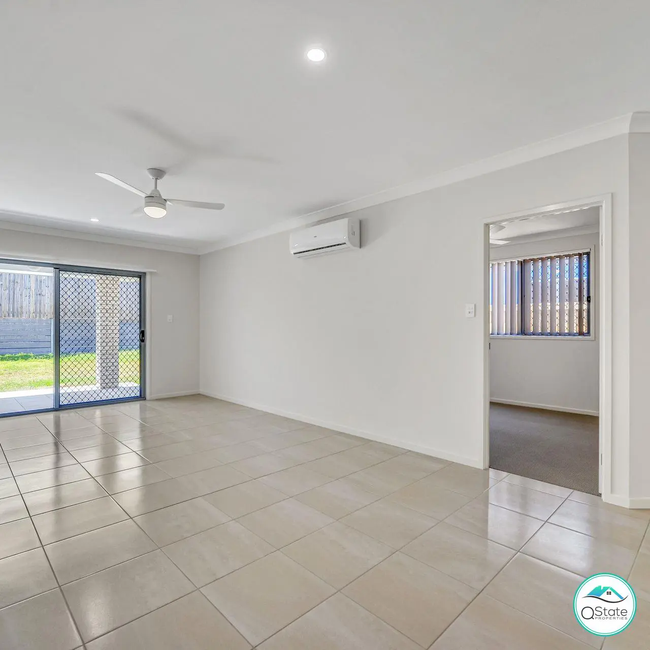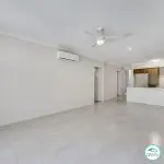 Upon entering, you'll discover a modern kitchen equipped with premium stainless steel appliances, including a dishwasher. The open-plan design seamlessly connects the kitchen to the spacious, air-conditioned living and dining areas, which feature large glass doors leading to the private backyard.